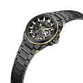 Kenneth Cole KCWGY0065606 — мужская автоматическая модель с эффектным скелетонизированным дизайном и современным спортивным акцентом. Крупный корпус выполнен из нержавеющей стали с тёмным PVDPVDУльтратонкое покрытие наносится в технике вакуумного напыления, сочетает в себе нитрид титана особой прочности со слоем золота или оксида хрома. Несёт в себе декоративную или защитную функцию.-покрытием, подчёркивающим строгий и технологичный характер модели. Циферблат с открытой архитектурой даёт возможность наблюдать за работой механизма, а стрелки и метки с люминесцентным покрытиемЛюминесцентное покрытиеПозволяет считывать показания времени в темноте. Производители наносят на стрелки, часовые индексы, безель или поверхность циферблата светонакопительный состав, дающий холодное свечение. обеспечивают читаемость даже в условиях слабого освещения. Защитную функцию выполняет минеральное стеклоМинеральное стеклоМинеральное стекло представляет собой искусственно выращенный минерал кварца. Такое стекло отличается особой устойчивостью к повреждениям и царапинам. Уступает по некоторым качествам сапфировому стеклу., устойчивое к повседневным повреждениям. Часы дополнены стальным браслетом с PVDPVDУльтратонкое покрытие наносится в технике вакуумного напыления, сочетает в себе нитрид титана особой прочности со слоем золота или оксида хрома. Несёт в себе декоративную или защитную функцию.-покрытием на раскладной застёжкеРаскладная застёжкаТакой тип застёжки используется только на браслетах из металла. Она никогда не раскрывается полностью, происходит разделение на 2 и более частей. Раскладывающая застёжка снизит вероятность потери часов к минимуму., который подчёркивает спортивную направленность модели и обеспечивает комфорт при носке.