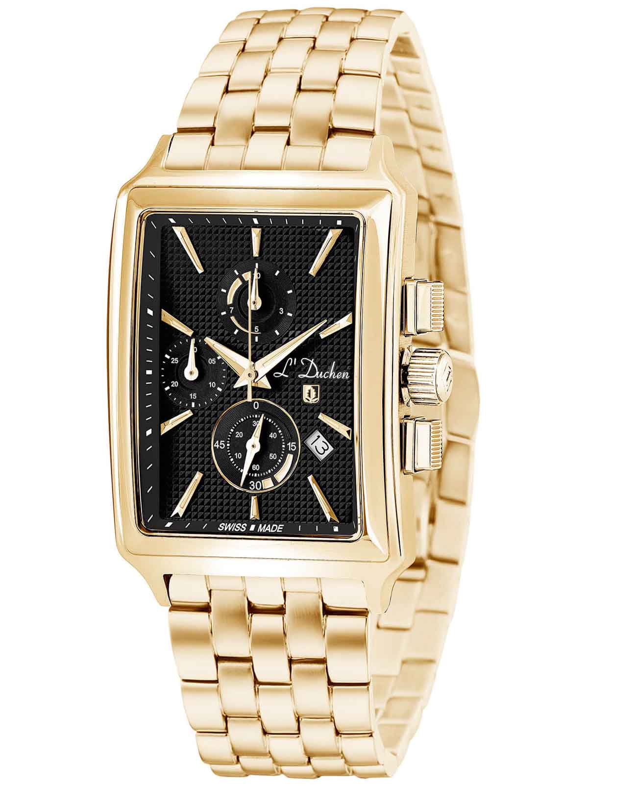 Мужские швейцарские часы- хронографХронографФункция позволяет измерять отрезки времени с особой точностью: часы, минуты, секунды. Верным признаком хронографа является наличие на циферблате 3 дополнительных окошек-счётчиков. L'Duchen Adventure Chrono D 612.20.31, кварцевый механизм с высокой точностью. Сапфировое стеклоСапфировое стеклоПрочный и надёжный материал из кристалла сапфира синтетического происхождения, характеризующийся особой твёрдостью и устойчивостью к царапинам и повреждениям. устойчивое к появлению царапин, обладающее высокой прозрачностью. Корпус часов выполнен из нержавеющей стали с PVD-покрытиемPVDУльтратонкое покрытие наносится в технике вакуумного напыления, сочетает в себе нитрид титана особой прочности со слоем золота или оксида хрома. Несёт в себе декоративную или защитную функцию.. Стрелки с люминесцентным покрытиемЛюминесцентное покрытиеПозволяет считывать показания времени в темноте. Производители наносят на стрелки, часовые индексы, безель или поверхность циферблата светонакопительный состав, дающий холодное свечение.. Окошко даты находится в положении между 4 и 5 часами. Класс водозащиты: 50 метров, позволит защитить корпус от случайных брызг или капель дождя. Стальной браслет с PVD-покрытиемPVDУльтратонкое покрытие наносится в технике вакуумного напыления, сочетает в себе нитрид титана особой прочности со слоем золота или оксида хрома. Несёт в себе декоративную или защитную функцию. на застёжке «бабочка» с кнопкамиЗастёжка "бабочка"Такой вид застёжки дополняется предохранителями, помогающими избежать случайного раскрытия браслета. Обладают изящным исполнением. .