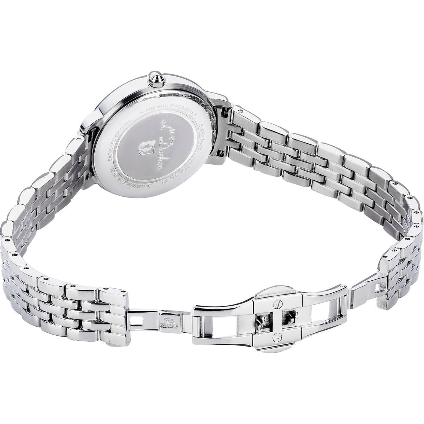 Женские кварцевые часы L'Duchen из коллекции Eternity — это изысканный аксессуар, подчеркивающий утончённость и женственность. Корпус диаметром 32 мм выполнен из нержавеющей стали 316L, а циферблат защищён сапфировым стекломСапфировое стеклоПрочный и надёжный материал из кристалла сапфира синтетического происхождения, характеризующийся особой твёрдостью и устойчивостью к царапинам и повреждениям.. Циферблат розового цвета изготовлен из натурального перламутра, придающего модели благородное сияние. Центральная часть украшена декоративным узором гильоше и инкрустирована 12 фианитами, добавляющими изысканное мерцание. Окошко даты расположено в положении 6 часов. Часы оснащены стальным браслетом на застёжке «бабочка» с кнопкамиЗастёжка "бабочка"Такой вид застёжки дополняется предохранителями, помогающими избежать случайного раскрытия браслета. Обладают изящным исполнением. . Водонепроницаемость 50 м позволяет использовать часы в повседневных условиях.