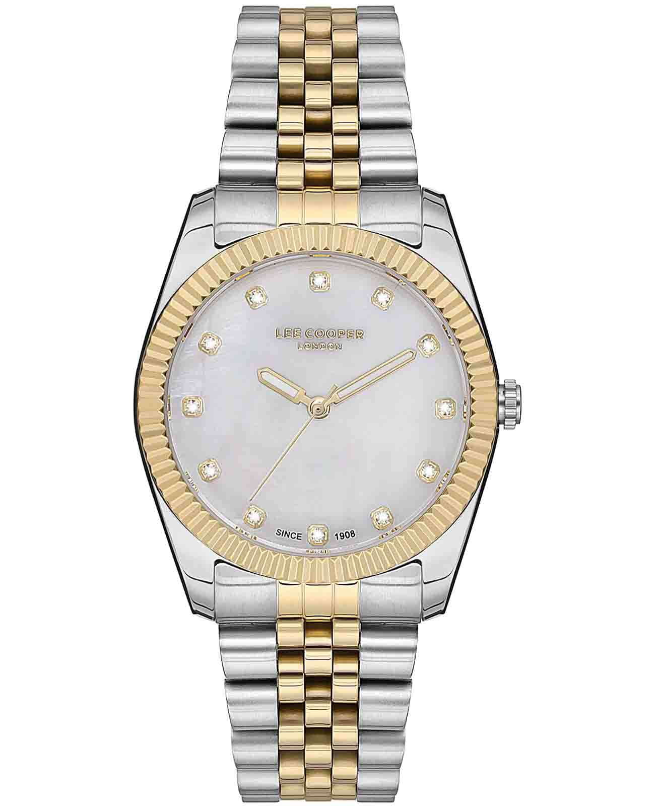 Женские наручные часы Lee Cooper LC07115.220 — это элегантная модель с утончённым дизайном. Корпус диаметром 36 мм выполнен из суперметалла, что придаёт часам изысканный вид. Перламутровый циферблат украшен изящными вставками из циркония в виде меток времени и стрелками, обеспечивая удобное считывание времени. Циферблат защищён минеральным стекломМинеральное стеклоМинеральное стекло представляет собой искусственно выращенный минерал кварца. Такое стекло отличается особой устойчивостью к повреждениям и царапинам. Уступает по некоторым качествам сапфировому стеклу., устойчивым к царапинам. Часы работают на кварцевом механизме, обеспечивая точность хода. Браслет из нержавеющей стали с раскладной застёжкойРаскладная застёжкаТакой тип застёжки используется только на браслетах из металла. Она никогда не раскрывается полностью, происходит разделение на 2 и более частей. Раскладывающая застёжка снизит вероятность потери часов к минимуму. гарантирует комфортное ношение и надёжную фиксацию на запястье. БезельБезельВнешний ободок, закрепляющий стекло. В спортивных часах так называется поворотное кольцо с делениями на циферблате, выполняет роль таймера – замеряет отрезки времени на шкале. Неподвижный безель – элемент декора. Однонаправленно вращающийся безель на дайверских часах позволяет фиксировать моменты погружения и выныривания на поверхность. с IP-покрытиемIP-покрытиеМетод ионного напыления. Демонстрирует повышенную устойчивость к истиранию, окислению и химическим веществам. Под воздействием высокого давления и температуры около 1500°C молекулы металла надёжно соединяются с частицами корпуса часов.. Водозащита 30 метров защищает часы от случайных брызг и дождя, делая их подходящими для повседневного использования.