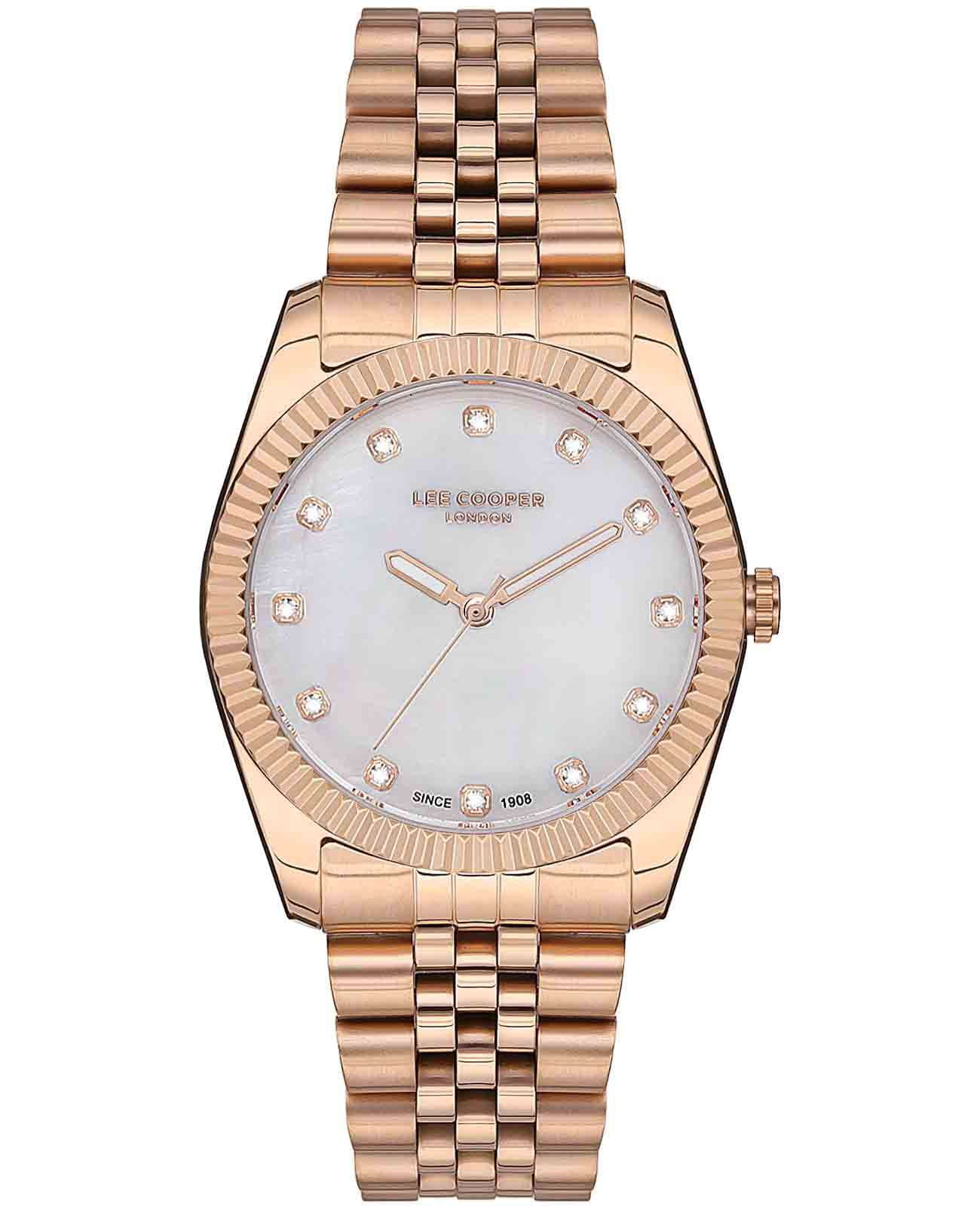 Женские наручные часы Lee Cooper LC07115.420 — это элегантная модель с утончённым дизайном. Корпус диаметром 36 мм выполнен из суперметалла с IP-покрытиемIP-покрытиеМетод ионного напыления. Демонстрирует повышенную устойчивость к истиранию, окислению и химическим веществам. Под воздействием высокого давления и температуры около 1500°C молекулы металла надёжно соединяются с частицами корпуса часов., что придаёт часам изысканный вид. Перламутровый циферблат украшен изящными вставками из циркония в виде меток времени и стрелками, обеспечивая удобное считывание времени. Циферблат защищён минеральным стекломМинеральное стеклоМинеральное стекло представляет собой искусственно выращенный минерал кварца. Такое стекло отличается особой устойчивостью к повреждениям и царапинам. Уступает по некоторым качествам сапфировому стеклу., устойчивым к царапинам. Часы работают на кварцевом механизме, обеспечивая точность хода. Браслет из нержавеющей стали с раскладной застёжкойРаскладная застёжкаТакой тип застёжки используется только на браслетах из металла. Она никогда не раскрывается полностью, происходит разделение на 2 и более частей. Раскладывающая застёжка снизит вероятность потери часов к минимуму. гарантирует комфортное ношение и надёжную фиксацию на запястье. Водозащита 30 метров защищает часы от случайных брызг и дождя, делая их подходящими для повседневного использования.
