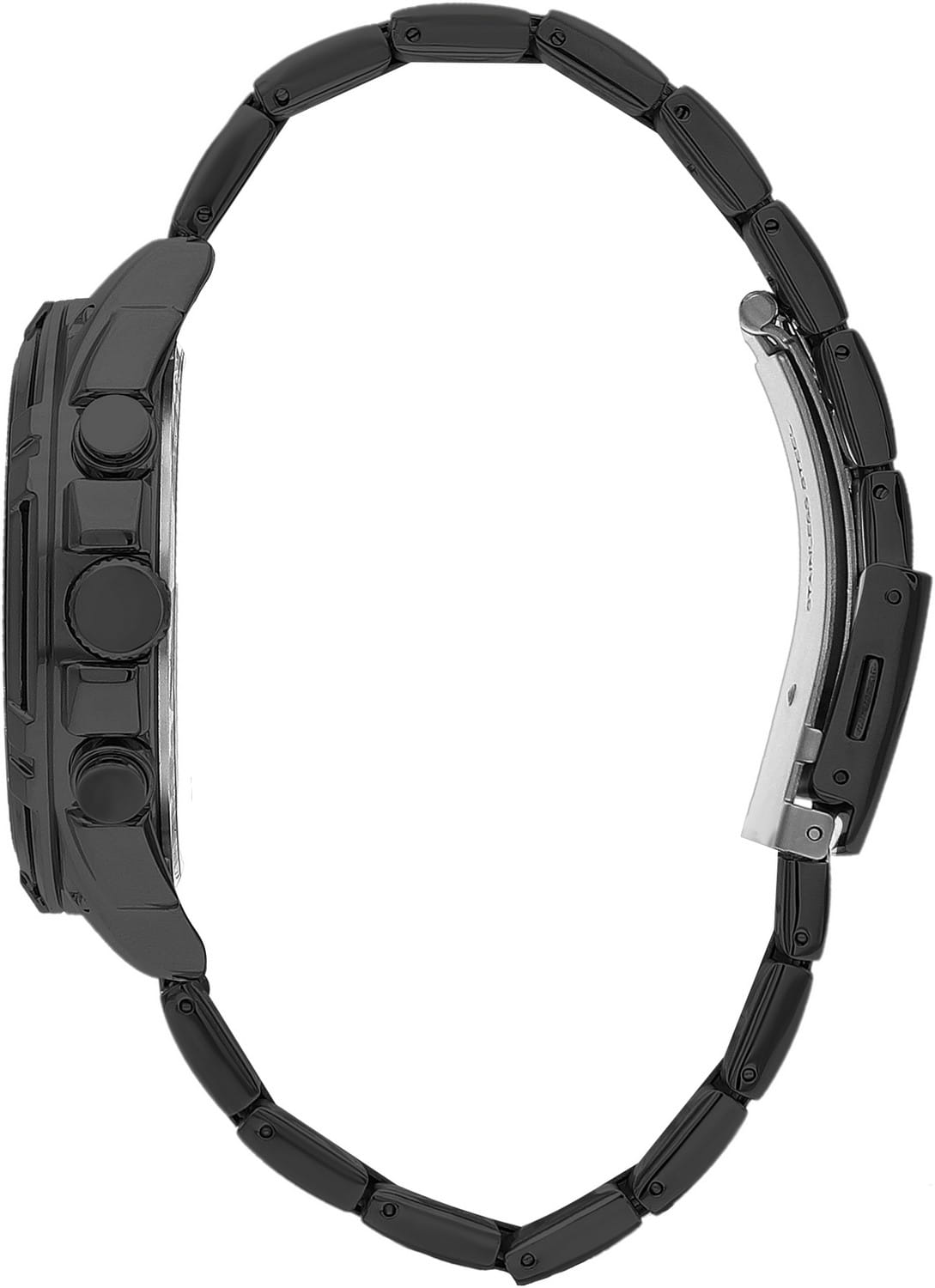 Мужские часы Lee Cooper LC07546.650 — это стильное сочетание элегантности и современного дизайна. Круглый корпус диаметром 45 мм выполнен из суперметалла с IP-покрытиемIP-покрытиеМетод ионного напыления. Демонстрирует повышенную устойчивость к истиранию, окислению и химическим веществам. Под воздействием высокого давления и температуры около 1500°C молекулы металла надёжно соединяются с частицами корпуса часов. черного цвета, что придает модели особый вид. Циферблат защищен минеральным стекломМинеральное стеклоМинеральное стекло представляет собой искусственно выращенный минерал кварца. Такое стекло отличается особой устойчивостью к повреждениям и царапинам. Уступает по некоторым качествам сапфировому стеклу., обеспечивающим устойчивость к царапинам. Метки в виде штрихов. Часы оснащены надежным кварцевым механизмом, а стальной браслет на раскладной застёжкеРаскладная застёжкаТакой тип застёжки используется только на браслетах из металла. Она никогда не раскрывается полностью, происходит разделение на 2 и более частей. Раскладывающая застёжка снизит вероятность потери часов к минимуму. с IP-покрытиемIP-покрытиеМетод ионного напыления. Демонстрирует повышенную устойчивость к истиранию, окислению и химическим веществам. Под воздействием высокого давления и температуры около 1500°C молекулы металла надёжно соединяются с частицами корпуса часов. гарантирует комфортную посадку на запястье. Окошко даты находится в положении между 4 и 5 часов. Стрелки и метки с люминесцентным покрытиемЛюминесцентное покрытиеПозволяет считывать показания времени в темноте. Производители наносят на стрелки, часовые индексы, безель или поверхность циферблата светонакопительный состав, дающий холодное свечение. позволяют легко считывать время даже в условиях недостаточного освещения. Водозащита 50 метров позволит защитить корпус от случайных брызг или капель дождя. Lee Cooper — отличный выбор для тех, кто ценит утонченность и качество.