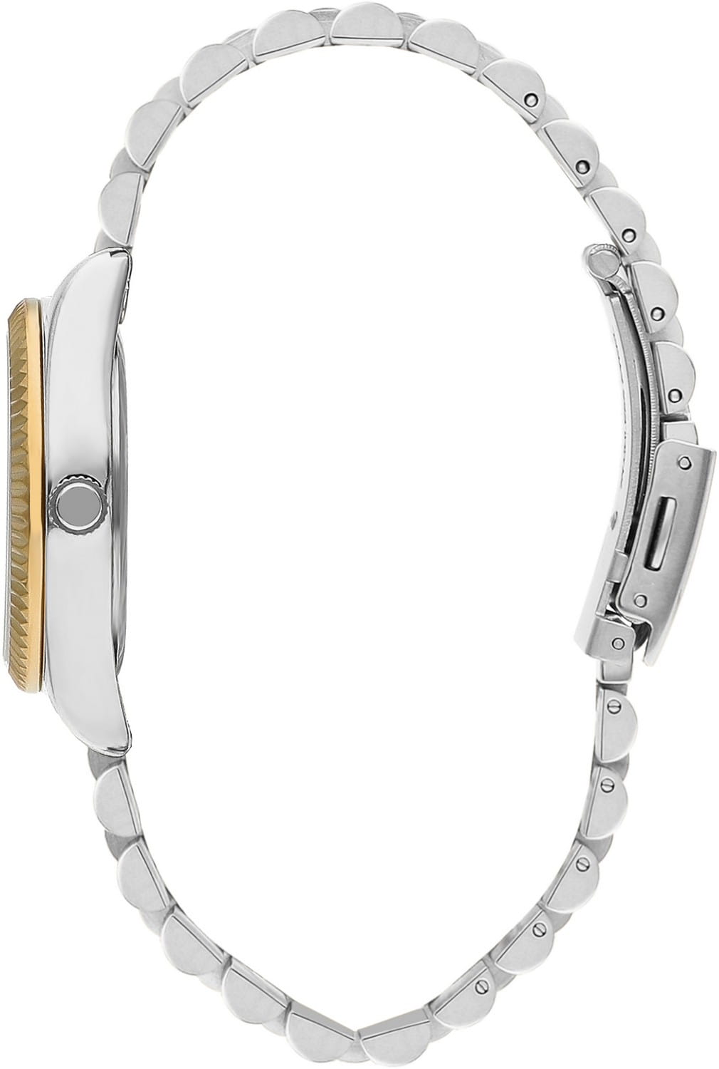Женские наручные часы Lee Cooper LC07681.230 — это элегантная модель с утончённым дизайном. Корпус диаметром 32 мм выполнен из суперметалла с безелемБезельВнешний ободок, закрепляющий стекло. В спортивных часах так называется поворотное кольцо с делениями на циферблате, выполняет роль таймера – замеряет отрезки времени на шкале. Неподвижный безель – элемент декора. Однонаправленно вращающийся безель на дайверских часах позволяет фиксировать моменты погружения и выныривания на поверхность. с IP-покрытиемIP-покрытиеМетод ионного напыления. Демонстрирует повышенную устойчивость к истиранию, окислению и химическим веществам. Под воздействием высокого давления и температуры около 1500°C молекулы металла надёжно соединяются с частицами корпуса часов., что придаёт часам изысканный вид. Серебристый циферблат украшен изящными вставками из циркония в виде меток времени и стрелками, обеспечивая удобное считывание времени. Циферблат защищён минеральным стекломМинеральное стеклоМинеральное стекло представляет собой искусственно выращенный минерал кварца. Такое стекло отличается особой устойчивостью к повреждениям и царапинам. Уступает по некоторым качествам сапфировому стеклу., устойчивым к царапинам. Часы работают на кварцевом механизме, обеспечивая точность хода. Браслет из нержавеющей стали с частичным IP-покрытиемIP-покрытиеМетод ионного напыления. Демонстрирует повышенную устойчивость к истиранию, окислению и химическим веществам. Под воздействием высокого давления и температуры около 1500°C молекулы металла надёжно соединяются с частицами корпуса часов. с раскладной застёжкойРаскладная застёжкаТакой тип застёжки используется только на браслетах из металла. Она никогда не раскрывается полностью, происходит разделение на 2 и более частей. Раскладывающая застёжка снизит вероятность потери часов к минимуму. гарантирует комфортное ношение и надёжную фиксацию на запястье. Стрелки с люминесцентным покрытиемЛюминесцентное покрытиеПозволяет считывать показания времени в темноте. Производители наносят на стрелки, часовые индексы, безель или поверхность циферблата светонакопительный состав, дающий холодное свечение., обеспечивающим хорошую читаемость в темноте. Водозащита 30 метров защищает часы от случайных брызг и дождя, делая их подходящими для повседневного использования.