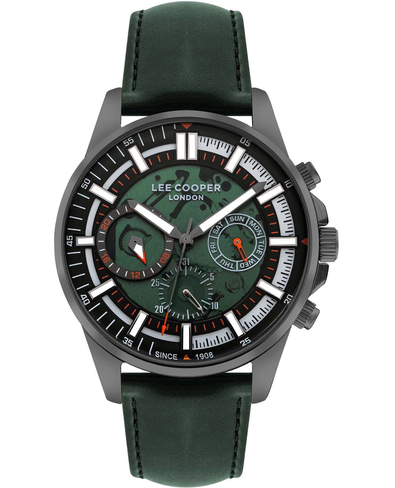 Lee Cooper LC07816.077  — элегантная модель с функциональными возможностями для повседневного использования. Корпус из суперметалла с IP-покрытиемIP-покрытиеМетод ионного напыления. Демонстрирует повышенную устойчивость к истиранию, окислению и химическим веществам. Под воздействием высокого давления и температуры около 1500°C молекулы металла надёжно соединяются с частицами корпуса часов. и диаметром 44 мм придаёт часам классический и современный вид. Циферблат защищён минеральным стекломМинеральное стеклоМинеральное стекло представляет собой искусственно выращенный минерал кварца. Такое стекло отличается особой устойчивостью к повреждениям и царапинам. Уступает по некоторым качествам сапфировому стеклу., устойчивым к царапинам, хорошо может выдержать небольшие удары и падения. Стильный циферблат оформлен изысканными индексами и дополнен окошками даты, дня недели и 24-часового индикатора, а также аккуратными метками и стрелками с люминесцентным покрытиемЛюминесцентное покрытиеПозволяет считывать показания времени в темноте. Производители наносят на стрелки, часовые индексы, безель или поверхность циферблата светонакопительный состав, дающий холодное свечение., что гарантирует читаемость даже в условиях недостаточного освещения. Часы работают на кварцевом механизме, обеспечивающем точность хода. Кожаный ремешок на стандартной застёжке гарантирует удобную посадку и надёжную фиксацию на запястье. Водозащита 50 метров защищает часы от брызг и дождя, делая их подходящими для повседневного использования.
