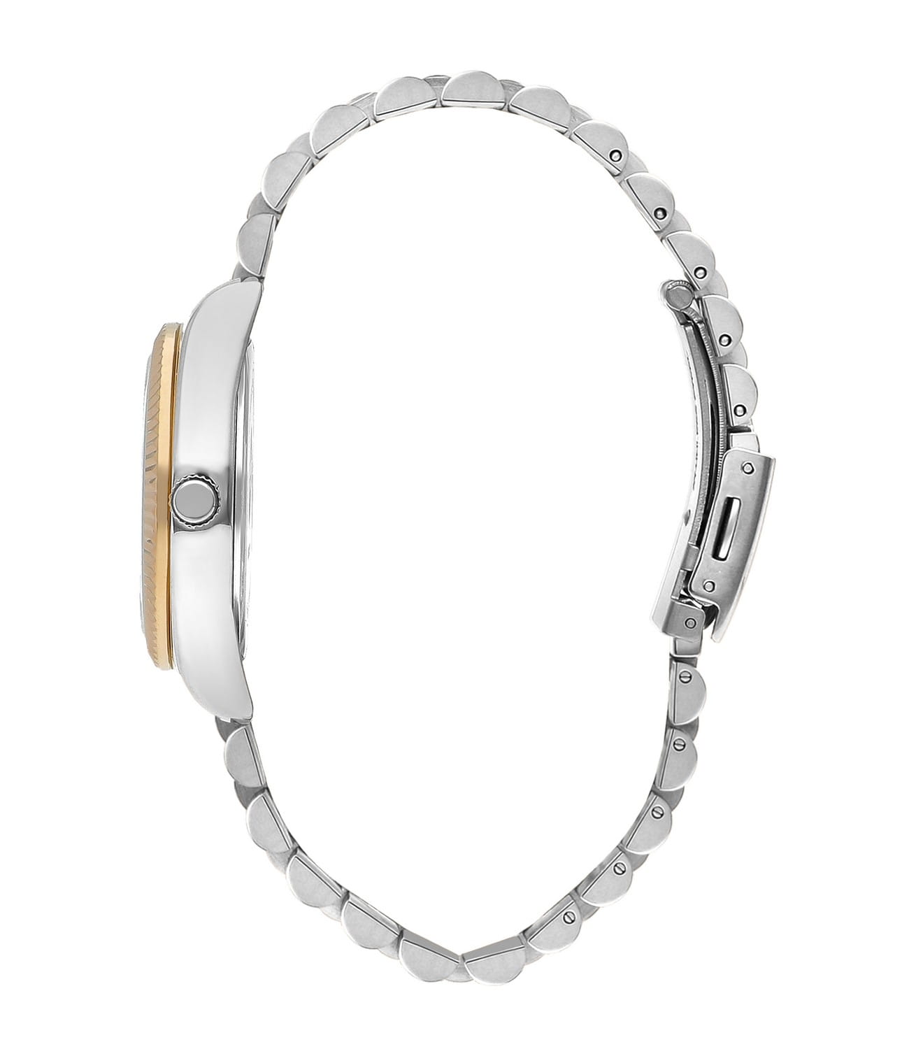 Женские часы Lee Cooper LC07824.250 выполнены в классическом стиле и сочетают строгий дизайн с надёжным механизмом. Модель оснащена кварцевым механизмом, обеспечивающим точность хода и минимальное обслуживание. Корпус с диаметром 36 мм, изготовлен из суперметалла с изысканным неподвижным безелемБезельВнешний ободок, закрепляющий стекло. В спортивных часах так называется поворотное кольцо с делениями на циферблате, выполняет роль таймера – замеряет отрезки времени на шкале. Неподвижный безель – элемент декора. Однонаправленно вращающийся безель на дайверских часах позволяет фиксировать моменты погружения и выныривания на поверхность. с IP-покрытиемIP-покрытиеМетод ионного напыления. Демонстрирует повышенную устойчивость к истиранию, окислению и химическим веществам. Под воздействием высокого давления и температуры около 1500°C молекулы металла надёжно соединяются с частицами корпуса часов., гарантирует комфорт при ношении. Черный циферблат дополнен штрихами и римскими цифрами для чёткого отсчёта времени. Защиту циферблата обеспечивает минеральное стеклоМинеральное стеклоМинеральное стекло представляет собой искусственно выращенный минерал кварца. Такое стекло отличается особой устойчивостью к повреждениям и царапинам. Уступает по некоторым качествам сапфировому стеклу., устойчивое к мелким механическим повреждениям. Стальной браслет с частичным IP-покрытиемIP-покрытиеМетод ионного напыления. Демонстрирует повышенную устойчивость к истиранию, окислению и химическим веществам. Под воздействием высокого давления и температуры около 1500°C молекулы металла надёжно соединяются с частицами корпуса часов. на раскладной застёжкеРаскладная застёжкаТакой тип застёжки используется только на браслетах из металла. Она никогда не раскрывается полностью, происходит разделение на 2 и более частей. Раскладывающая застёжка снизит вероятность потери часов к минимуму. гарантирует удобную посадку и надёжную фиксацию на запястье. Стрелки и метки с люминесцентным покрытиемЛюминесцентное покрытиеПозволяет считывать показания времени в темноте. Производители наносят на стрелки, часовые индексы, безель или поверхность циферблата светонакопительный состав, дающий холодное свечение., обеспечивающим хорошую читаемость в темноте. Водозащита 30WR позволяет использовать часы в повседневных условиях без риска повреждения от случайных брызг воды. Это сочетание классического дизайна, прочности материалов и качества исполнения для уверенных в себе женщин.