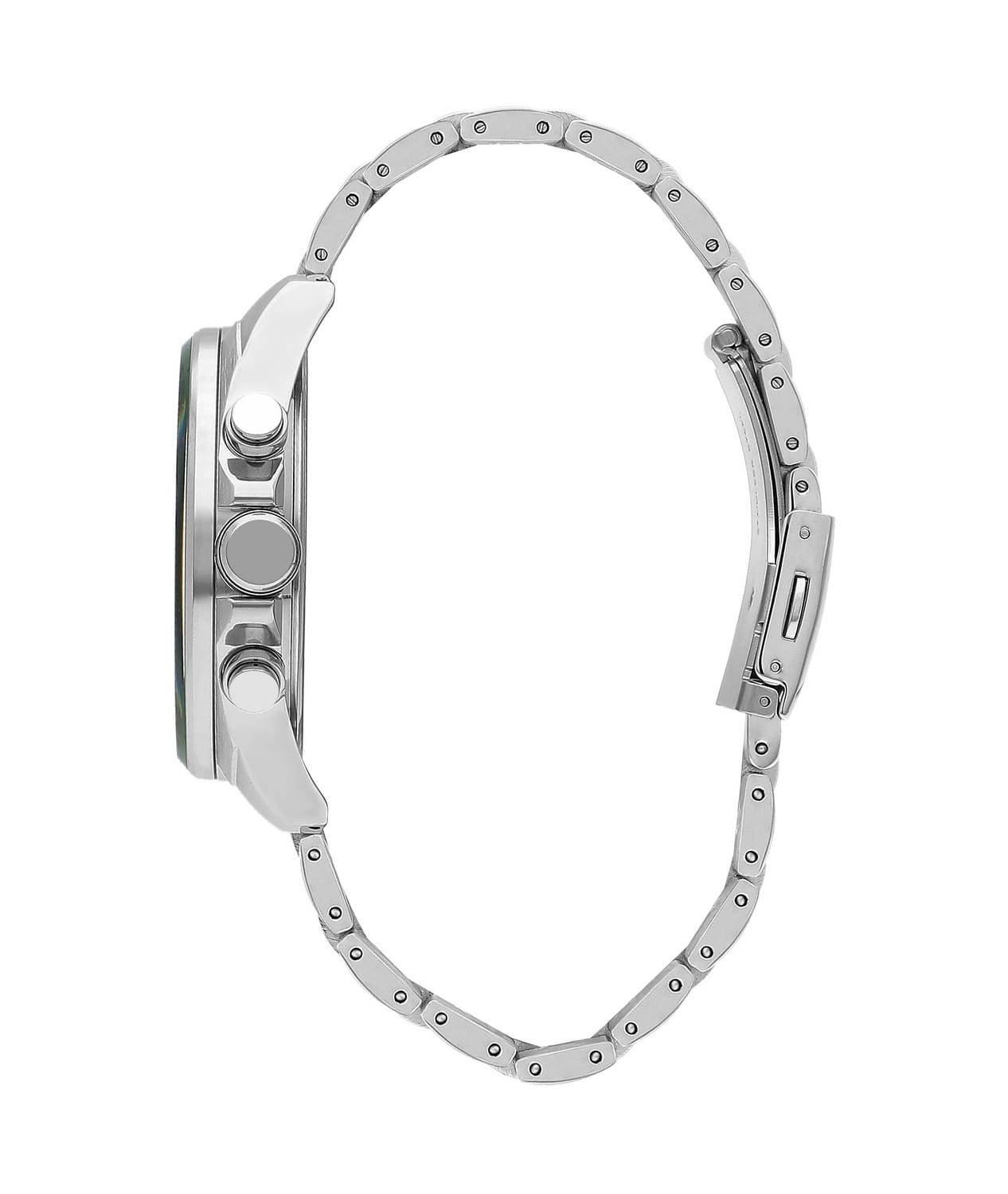 Мужские наручные часы Lee Cooper LC07830.390 — элегантная модель с функциональными возможностями для повседневного использования. Круглый корпус из суперметалла придаёт часам классический и современный вид. Циферблат с акцентными метками и стрелками с люминесцентным покрытиемЛюминесцентное покрытиеПозволяет считывать показания времени в темноте. Производители наносят на стрелки, часовые индексы, безель или поверхность циферблата светонакопительный состав, дающий холодное свечение. также оснащён вспомогательными индикаторами, включая 24-часовой формат времени, а также второй часовой поясВторой часовой поясФункция, позволяющая отображать время двух часовых поясов одновременно.. Изысканный циферблат защищён минеральным стекломМинеральное стеклоМинеральное стекло представляет собой искусственно выращенный минерал кварца. Такое стекло отличается особой устойчивостью к повреждениям и царапинам. Уступает по некоторым качествам сапфировому стеклу., устойчивым к царапинам. Часы работают на кварцевом механизме, обеспечивающем точность хода. Браслет из нержавеющей стали с раскладной застёжкойРаскладная застёжкаТакой тип застёжки используется только на браслетах из металла. Она никогда не раскрывается полностью, происходит разделение на 2 и более частей. Раскладывающая застёжка снизит вероятность потери часов к минимуму. гарантирует удобную посадку и надёжную фиксацию на запястье. Водозащита 50 метров защищает часы от брызг и дождя, делая их подходящими для повседневного использования.