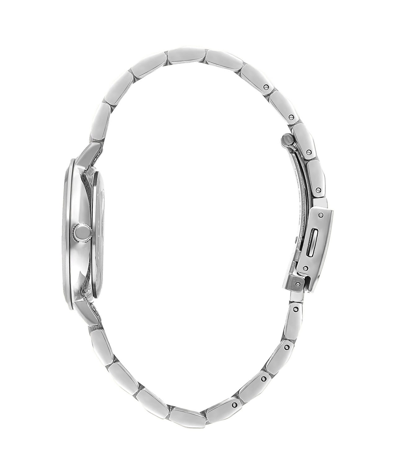 Женские часы Lee Cooper LC07857.380 — это стильное сочетание элегантности и современного дизайна. Изящный круглый корпус диаметром 34 мм выполнен из суперметалла серебристого цвета, что придает модели особый блеск. Розовый циферблат защищен минеральным стекломМинеральное стеклоМинеральное стекло представляет собой искусственно выращенный минерал кварца. Такое стекло отличается особой устойчивостью к повреждениям и царапинам. Уступает по некоторым качествам сапфировому стеклу., обеспечивающим устойчивость к царапинам. Метки в виде штрихов. Часы оснащены надежным кварцевым механизмом, а стальной браслет на раскладной застёжкеРаскладная застёжкаТакой тип застёжки используется только на браслетах из металла. Она никогда не раскрывается полностью, происходит разделение на 2 и более частей. Раскладывающая застёжка снизит вероятность потери часов к минимуму. гарантирует комфортную посадку на запястье. Водозащита 30 метров защищает модель от случайных брызг и дождя. В комплекте к часам идет дополнительный браслет. Lee Cooper  — отличный выбор для тех, кто ценит утонченность и качество.