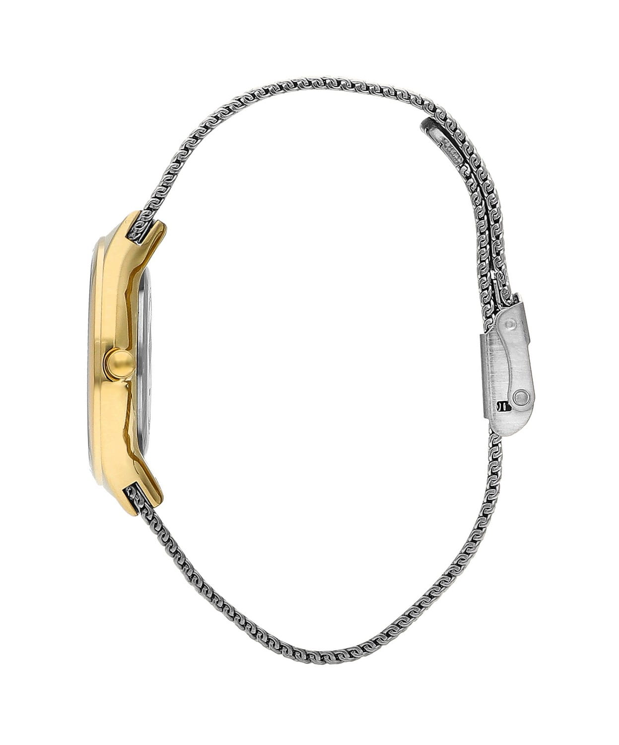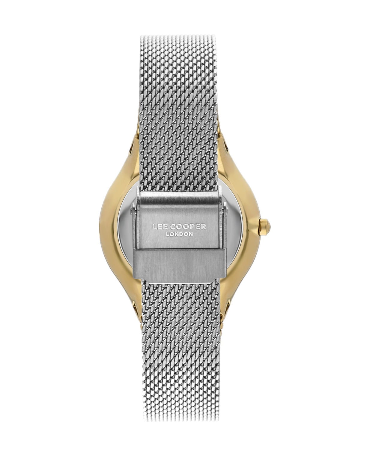 Женские часы Lee Cooper LC07862.230 — это стильное сочетание элегантности и современного дизайна. Изящный корпус диаметром 32 мм выполнен из суперметалла с IP-покрытиемIP-покрытиеМетод ионного напыления. Демонстрирует повышенную устойчивость к истиранию, окислению и химическим веществам. Под воздействием высокого давления и температуры около 1500°C молекулы металла надёжно соединяются с частицами корпуса часов. золотого цвета. Серый циферблат инкрустирован цирконами, что придает модели особый блеск и защищен минеральным стекломМинеральное стеклоМинеральное стекло представляет собой искусственно выращенный минерал кварца. Такое стекло отличается особой устойчивостью к повреждениям и царапинам. Уступает по некоторым качествам сапфировому стеклу., обеспечивающим устойчивость к царапинам. Центральные часовая, минутная стрелки. Часы оснащены надежным кварцевым механизмом. Стальной браслет с застежкой, выполненной в виде раскладного замкаРаскладной замокДанный вариант застежки используется только на часах с металлическим браслетом. Отличительная особенность такого крепления в том, что длина браслета становится универсальной и вы можете самостоятельно отрегулировать нужный вам размер – застежка просто двигается по браслету часов., гарантирующего комфортное и безопасное ношение. Водозащита 30 метров защищает модель от случайных брызг и дождя. Lee Cooper  — отличный выбор для тех, кто ценит утонченность и качество.