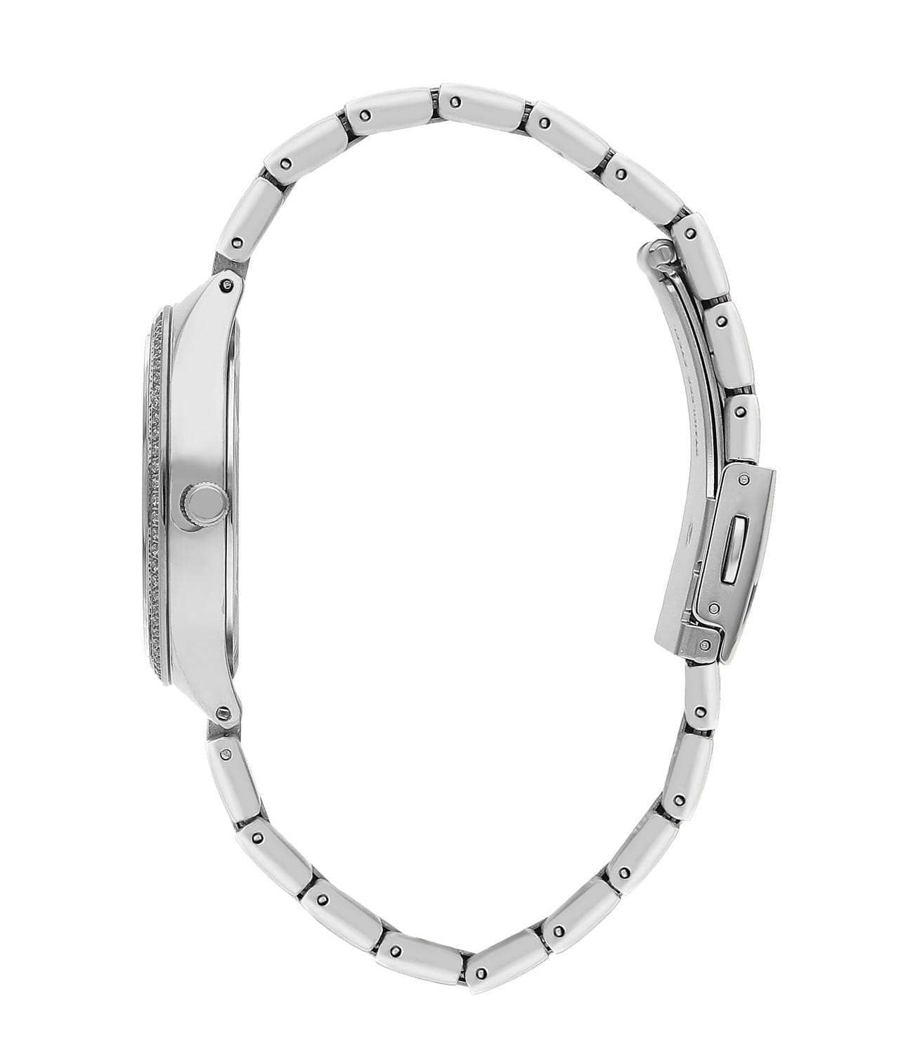 Женские часы Lee Cooper LC07863.230 — это стильное сочетание элегантности и современного дизайна. Круглый корпус диаметром 34 мм выполнен из суперметалла, а неподвижный безельБезельВнешний ободок, закрепляющий стекло. В спортивных часах так называется поворотное кольцо с делениями на циферблате, выполняет роль таймера – замеряет отрезки времени на шкале. Неподвижный безель – элемент декора. Однонаправленно вращающийся безель на дайверских часах позволяет фиксировать моменты погружения и выныривания на поверхность. украшен цирконами, придающими модели особый блеск. Серебристый циферблат защищен минеральным стекломМинеральное стеклоМинеральное стекло представляет собой искусственно выращенный минерал кварца. Такое стекло отличается особой устойчивостью к повреждениям и царапинам. Уступает по некоторым качествам сапфировому стеклу., обеспечивающим устойчивость к царапинам. Метки в виде штрихов. Часы оснащены надежным кварцевым механизмом, а металлический браслет с IP-покрытиемIP-покрытиеМетод ионного напыления. Демонстрирует повышенную устойчивость к истиранию, окислению и химическим веществам. Под воздействием высокого давления и температуры около 1500°C молекулы металла надёжно соединяются с частицами корпуса часов. на раскладной застёжкеРаскладная застёжкаТакой тип застёжки используется только на браслетах из металла. Она никогда не раскрывается полностью, происходит разделение на 2 и более частей. Раскладывающая застёжка снизит вероятность потери часов к минимуму. гарантирует комфортную посадку на запястье. Мультифункциональная модель с индикацией даты, дня недели, с дополнительным 24-х часовым индикатором. Водозащита 30 метров защищает модель от случайных брызг и дождя. Lee Cooper — отличный выбор для тех, кто ценит утонченность и качество.