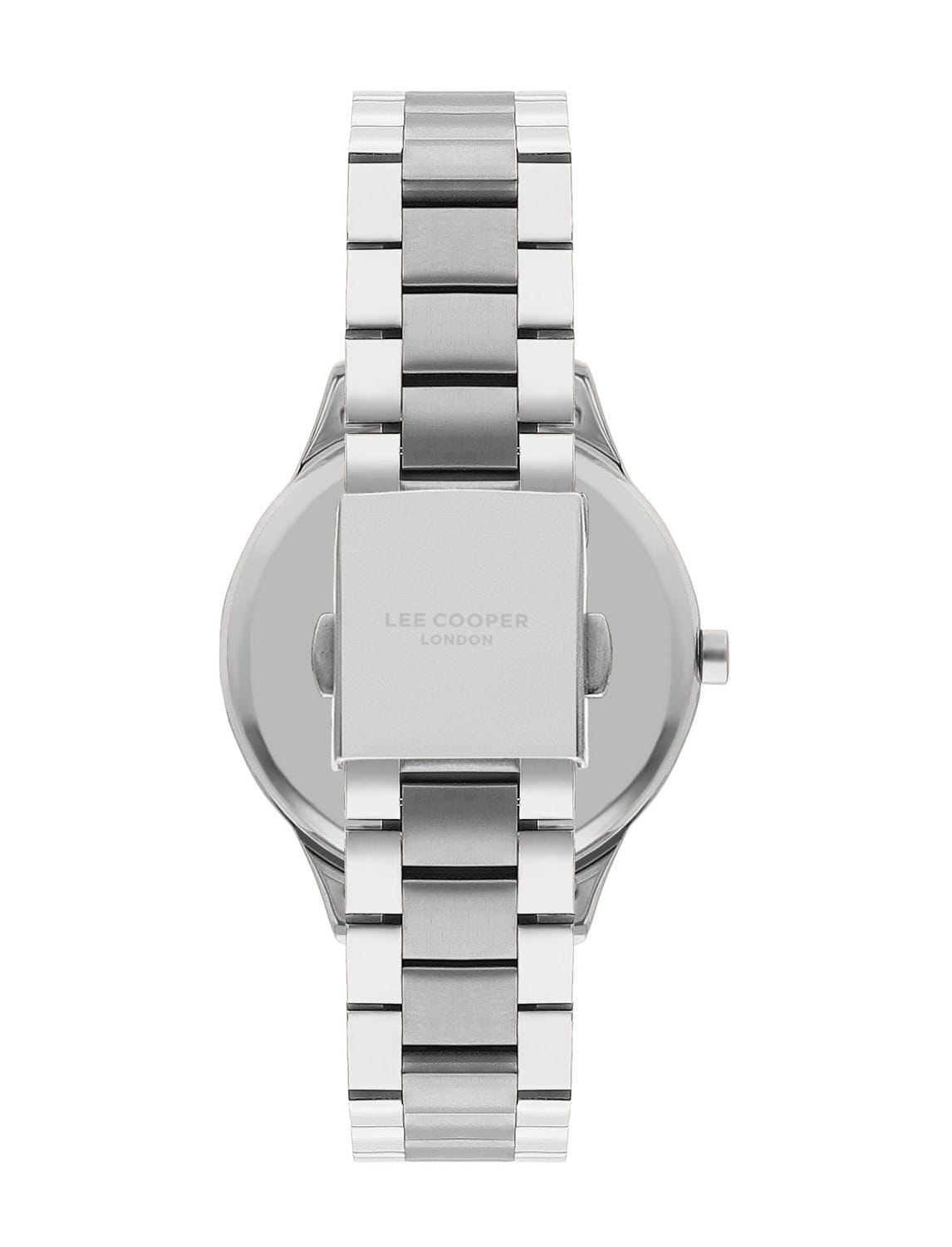 Женские часы Lee Cooper LC07865.380 — это стильное сочетание элегантности и современного дизайна. Круглый корпус диаметром 38 мм выполнен из суперметалла серебристого цвета, придающий модели особый блеск. Розовый циферблат защищен минеральным стекломМинеральное стеклоМинеральное стекло представляет собой искусственно выращенный минерал кварца. Такое стекло отличается особой устойчивостью к повреждениям и царапинам. Уступает по некоторым качествам сапфировому стеклу., обеспечивающим устойчивость к царапинам. Часы оснащены надежным кварцевым механизмом, а стальной браслет на раскладной застёжкеРаскладная застёжкаТакой тип застёжки используется только на браслетах из металла. Она никогда не раскрывается полностью, происходит разделение на 2 и более частей. Раскладывающая застёжка снизит вероятность потери часов к минимуму. гарантирует комфортную посадку на запястье. Мультифункциональная модель с индикацией даты, дня недели, с дополнительным 24-х часовым индикатором. Водозащита 30 метров защищает модель от случайных брызг и дождя. Lee Cooper — отличный выбор для тех, кто ценит утонченность и качество.