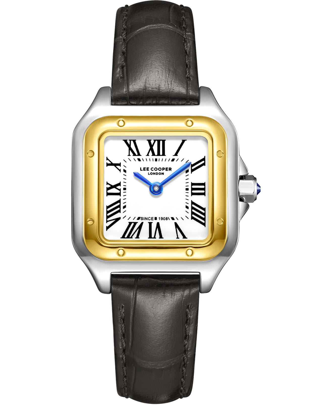 Женские наручные часы Lee Cooper LC08191.231 — воплощение элегантности и стиля, идеально подходящее для современной женщины. Эти часы сочетают в себе классический дизайн и современные тенденции, делая их универсальным аксессуаром для любого случая. Корпус размером 27 мм x 35 мм выполнен из суперметалла серебристого цвета, что придаёт часам изысканный вид. Циферблат с изящными метками в виде римских цифр и стрелками, обеспечивая удобное считывание времени. Циферблат защищён минеральным стекломМинеральное стеклоМинеральное стекло представляет собой искусственно выращенный минерал кварца. Такое стекло отличается особой устойчивостью к повреждениям и царапинам. Уступает по некоторым качествам сапфировому стеклу., устойчивым к царапинам. Неподвижный безельБезельВнешний ободок, закрепляющий стекло. В спортивных часах так называется поворотное кольцо с делениями на циферблате, выполняет роль таймера – замеряет отрезки времени на шкале. Неподвижный безель – элемент декора. Однонаправленно вращающийся безель на дайверских часах позволяет фиксировать моменты погружения и выныривания на поверхность. с IP-покрытиемIP-покрытиеМетод ионного напыления. Демонстрирует повышенную устойчивость к истиранию, окислению и химическим веществам. Под воздействием высокого давления и температуры около 1500°C молекулы металла надёжно соединяются с частицами корпуса часов. золотистого цвета. Часы работают на кварцевом механизме, обеспечивая точность хода. Кожаный ремешок на стандартной застёжке гарантирует комфортное ношение и надёжную фиксацию на запястье. Водозащита 30 метров защищает часы от случайных брызг и дождя, делая их подходящими для повседневного использования.