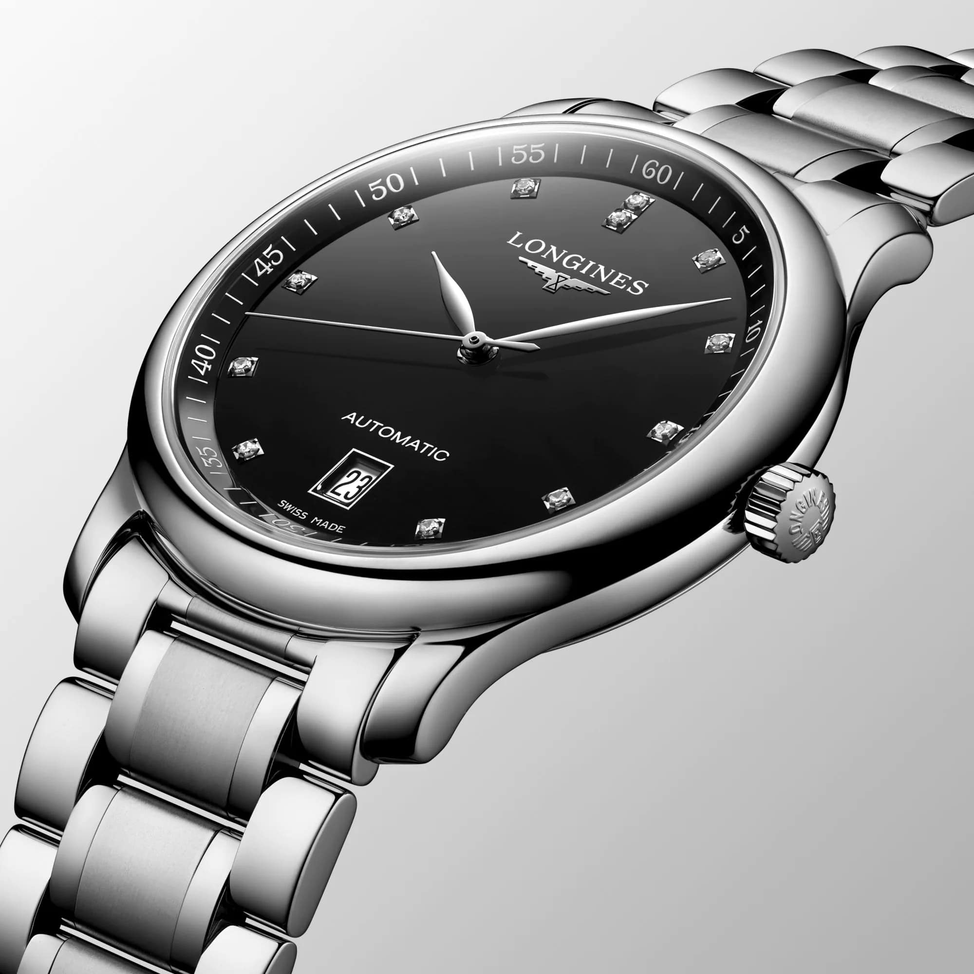 Женские швейцарские механические часы с автоподзаводом Longines Master Collection L2.628.4.57.6. Сапфировое стеклоСапфировое стеклоПрочный и надёжный материал из кристалла сапфира синтетического происхождения, характеризующийся особой твёрдостью и устойчивостью к царапинам и повреждениям. устойчивое к появлению царапин, обладающее высокой прозрачностью. Корпус часов изготовлен из нержавеющей стали. Изысканная чистота циферблата подчеркивает ее мягкий силуэт, обрамленный сиянием бриллиантов. Циферблат с 12 бриллиантами группы Top Wesselton VS-SI общим весом 0.055 карата. Окошко даты в положении 6 часов. Класс водозащиты: 30 метров, позволит защитить корпус от случайных брызг или капель дождя. Браслет из стали на застёжке «бабочка» с кнопкамиЗастёжка "бабочка"Такой вид застёжки дополняется предохранителями, помогающими избежать случайного раскрытия браслета. Обладают изящным исполнением. .
