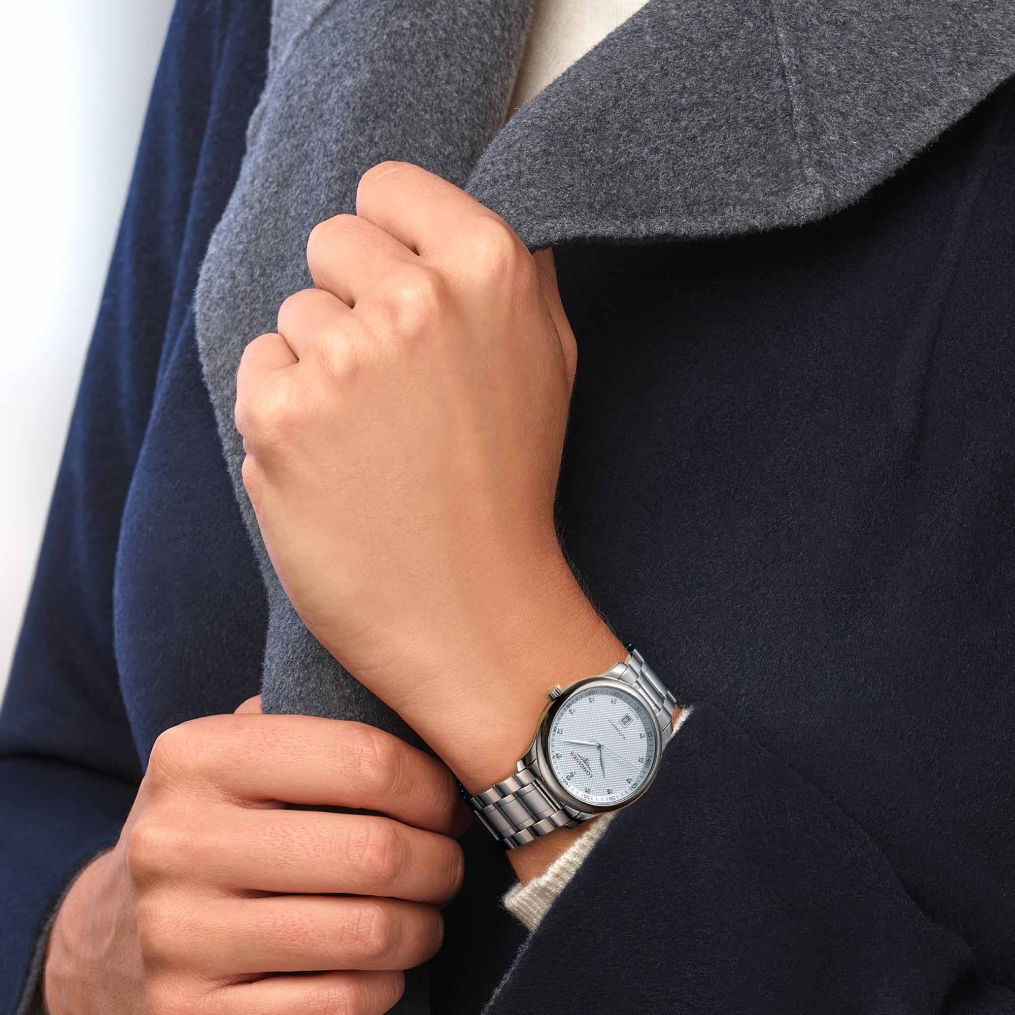 Женские швейцарские механические часы с автоподзаводом Longines Master Collection L2.628.4.77.6. Сапфировое стеклоСапфировое стеклоПрочный и надёжный материал из кристалла сапфира синтетического происхождения, характеризующийся особой твёрдостью и устойчивостью к царапинам и повреждениям. устойчивое к появлению царапин, обладающее высокой прозрачностью. Корпус часов изготовлен из нержавеющей стали. Изысканная чистота циферблата подчеркивает ее мягкий силуэт, обрамленный сиянием бриллиантов. Циферблат с 12 бриллиантами группы Top Wesselton VS-SI общим весом 0.055 карата. Окошко даты в положении 6 часов. Класс водозащиты: 30 метров, позволит защитить корпус от случайных брызг или капель дождя. Браслет из стали на застёжке «бабочка» с кнопкамиЗастёжка "бабочка"Такой вид застёжки дополняется предохранителями, помогающими избежать случайного раскрытия браслета. Обладают изящным исполнением. .