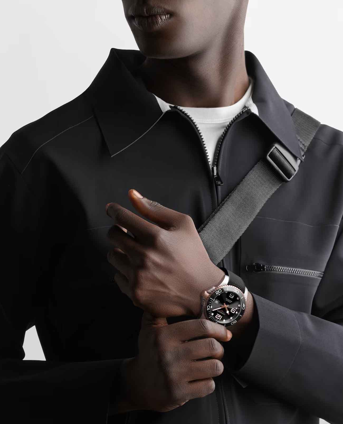 Мужские швейцарские механические часы для дайвинга Longines Hydroconquest L3.782.3.58.9. Сапфировое стеклоСапфировое стеклоПрочный и надёжный материал из кристалла сапфира синтетического происхождения, характеризующийся особой твёрдостью и устойчивостью к царапинам и повреждениям. с многослойным антибликовым покрытием с обеих сторон, устойчивое к появлению царапин, обладающее высокой прозрачностью. Корпус часов изготовлен из стали. Вращающийся безельБезельВнешний ободок, закрепляющий стекло. В спортивных часах так называется поворотное кольцо с делениями на циферблате, выполняет роль таймера – замеряет отрезки времени на шкале. Неподвижный безель – элемент декора. Однонаправленно вращающийся безель на дайверских часах позволяет фиксировать моменты погружения и выныривания на поверхность. из стали с PVD-покрытиемPVDУльтратонкое покрытие наносится в технике вакуумного напыления, сочетает в себе нитрид титана особой прочности со слоем золота или оксида хрома. Несёт в себе декоративную или защитную функцию. и керамики, защищенный от царапин, никогда не изнашивается и не выцветает. Стрелки и метки с люминесцентным покрытиемЛюминесцентное покрытиеПозволяет считывать показания времени в темноте. Производители наносят на стрелки, часовые индексы, безель или поверхность циферблата светонакопительный состав, дающий холодное свечение.. Окошко даты находится в положении 3 часов. Класс водозащиты: 300 метров, позволит плавать, нырять и заниматься другими водными видами спорта. Каучковый ремешок на раскладной застёжкеРаскладная застёжкаТакой тип застёжки используется только на браслетах из металла. Она никогда не раскрывается полностью, происходит разделение на 2 и более частей. Раскладывающая застёжка снизит вероятность потери часов к минимуму..