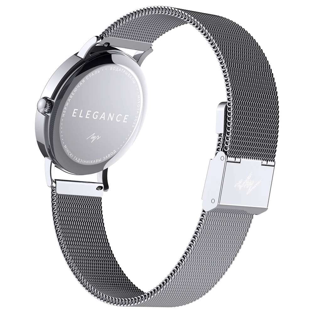 Женские наручные часы Луч Elegance 98370673 — это стильное сочетание элегантности и современного дизайна. Часы идеально подходят для повседневного ношения, а также для особых случаев. Изысканный корпус диаметром 36 мм выполнен из нержавеющей стали серебристого цвета, который придает модели особый вид. Циферблат защищен  минеральным стекломМинеральное стеклоМинеральное стекло представляет собой искусственно выращенный минерал кварца. Такое стекло отличается особой устойчивостью к повреждениям и царапинам. Уступает по некоторым качествам сапфировому стеклу., обеспечивающим устойчивость к царапинам. Лаконичные стрелки серебристого цвета. Часы оснащены кварцевым механизмом, а браслет из нержавеющей стали на раскладном замкеРаскладной замокДанный вариант застежки используется только на часах с металлическим браслетом. Отличительная особенность такого крепления в том, что длина браслета становится универсальной и вы можете самостоятельно отрегулировать нужный вам размер – застежка просто двигается по браслету часов. гарантирует комфортную посадку на запястье. Водозащита 30 метров позволит защитить корпус от случайных брызг или капель дождя. Луч — отличный выбор для тех, кто ценит утонченность и качество.
