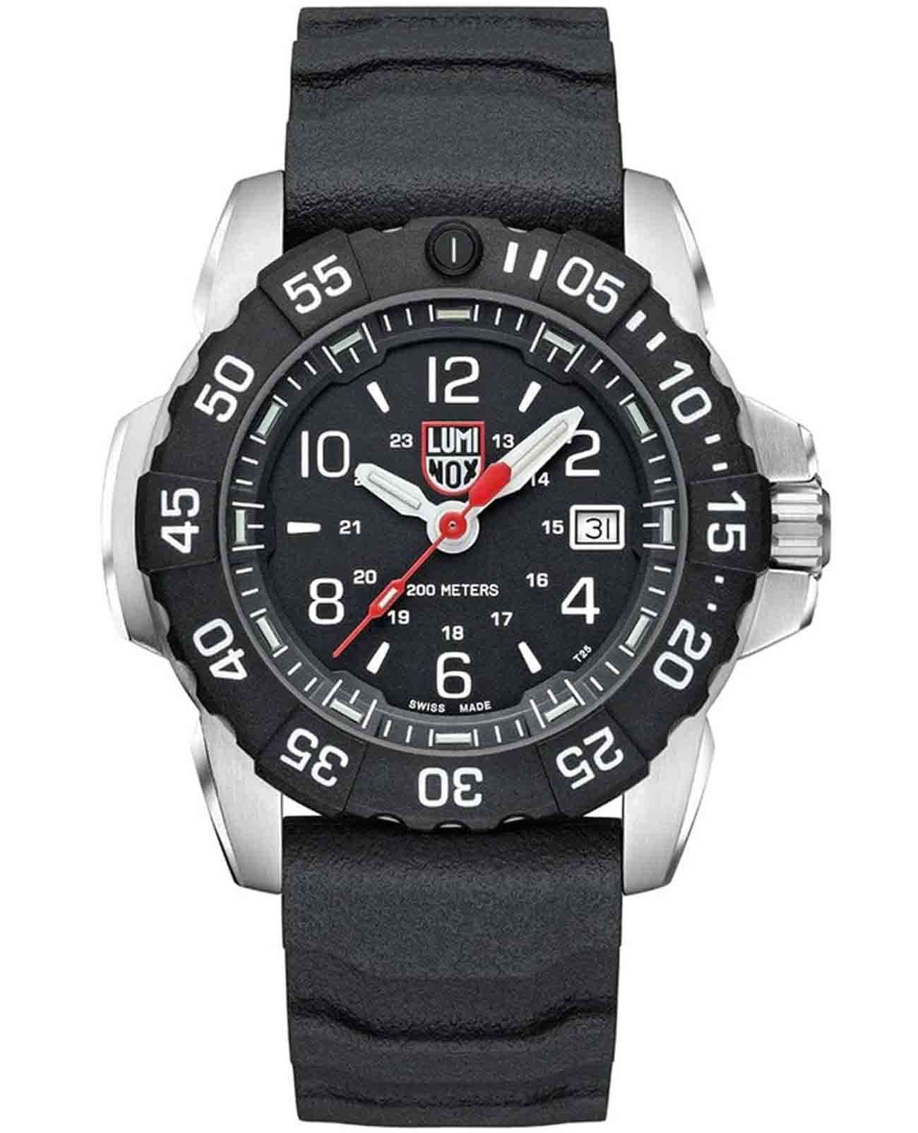 Мужские наручные часы Luminox XS.3251.CB из коллекции Navy SEAL сочетают в себе спортивный дизайн и надежность швейцарского качества . Модель обладает круглым корпусом диаметром 45 мм, изготовленным из стали и карбонаКарбонОт «carbon», «carbone» - углерод, углепластик - полимерный композиционный материал из переплетённых под определенным углом между собой нитей углеродного волокна, применяется для изготовления лёгких, но прочных деталей. В часах часто используют для украшения циферблатов и ремешков. Так же карбон используется в изготовлении корпусов. Такие корпуса обладают антикоррозионным свойством, не поддаются электромагнитному излучению, обладают повышенной прочностью и противоударностью. (CARBONOX™), что обеспечивает высокую устойчивость к внешним воздействиям при сохранении легкости . Циферблат черного цвета украшен контрастными метками и стрелками с , гарантирующим постоянную видимость времени даже в условиях низкой освещенности благодаря системе LLTLLTLLT — это автономный механизм подсветки, основанный на использовании микроскопических газонаполненных элементов. Специальные герметичные капсулы из боросиликатного стекла, интегрированные в циферблат, генерируют свечение без необходимости подключения к внешним источникам энергии. Для их работы не требуется ни дополнительный свет, ни механическое воздействие (например, нажатие кнопки). Свечение возникает благодаря химическому процессу: реакция между тритием, заключенным в капсулах, и люминофорным покрытием создает стабильное автономное освещение. Технология обеспечивает энергетическую независимость и долговечность подсветки. (микрогазовые огни) . Часы оснащены кварцевым механизмом швейцарского производства Ronda 515, обеспечивающим точность хода ±15 секунд в месяц . Защиту циферблата обеспечивает прочное сапфировое стеклоСапфировое стеклоПрочный и надёжный материал из кристалла сапфира синтетического происхождения, характеризующийся особой твёрдостью и устойчивостью к царапинам и повреждениям. с антибликовым покрытиемАнтибликовое покрытиеСлой оксида металла в 0,13-0,3 микрон, благодаря которому стекло часов не бликует и не отражает свет. Антибликовое покрытие уменьшает отражение света в 10 раз, обеспечивая отличную читаемость показателей циферблата., устойчивое к царапинам и механическим повреждениям . Водонепроницаемость модели достигает 20 атмосфер (200 метров), что делает их подходящими для плавания и активного отдыха на воде, включая дайвинг. Модель также оснащена безелемБезельВнешний ободок, закрепляющий стекло. В спортивных часах так называется поворотное кольцо с делениями на циферблате, выполняет роль таймера – замеряет отрезки времени на шкале. Неподвижный безель – элемент декора. Однонаправленно вращающийся безель на дайверских часах позволяет фиксировать моменты погружения и выныривания на поверхность. с односторонним вращением, что добавляет функциональности при использовании в водных условиях . Ремешок выполнен из черного каучука, что обеспечивает комфортное ношение в течение дня и удобство в уходе . Дополнительно часы имеют окно даты в положении «3 часа», что делает их практичными для повседневного использования .