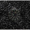 Мужские наручные часы Luminox XS.3510 из коллекции Navy SEAL сочетают в себе спортивный дизайн и надежность швейцарского качества . Модель обладает круглым корпусом диаметром 45 мм, изготовленным из карбонаКарбонОт «carbon», «carbone» - углерод, углепластик - полимерный композиционный материал из переплетённых под определенным углом между собой нитей углеродного волокна, применяется для изготовления лёгких, но прочных деталей. В часах часто используют для украшения циферблатов и ремешков. Так же карбон используется в изготовлении корпусов. Такие корпуса обладают антикоррозионным свойством, не поддаются электромагнитному излучению, обладают повышенной прочностью и противоударностью. (CARBONOX™), что обеспечивает высокую устойчивость к внешним воздействиям при сохранении легкости . Циферблат черного цвета украшен контрастными метками и стрелками с люминесцентным покрытиемЛюминесцентное покрытиеПозволяет считывать показания времени в темноте. Производители наносят на стрелки, часовые индексы, безель или поверхность циферблата светонакопительный состав, дающий холодное свечение., гарантирующим постоянную видимость времени даже в условиях низкой освещенности благодаря системе LLTLLTLLT — это автономный механизм подсветки, основанный на использовании микроскопических газонаполненных элементов. Специальные герметичные капсулы из боросиликатного стекла, интегрированные в циферблат, генерируют свечение без необходимости подключения к внешним источникам энергии. Для их работы не требуется ни дополнительный свет, ни механическое воздействие (например, нажатие кнопки). Свечение возникает благодаря химическому процессу: реакция между тритием, заключенным в капсулах, и люминофорным покрытием создает стабильное автономное освещение. Технология обеспечивает энергетическую независимость и долговечность подсветки. (микрогазовые огни) . Часы оснащены кварцевым механизмом швейцарского производства Ronda 715, обеспечивающим точность хода ±15 секунд в месяц . Защиту циферблата обеспечивает прочное минеральное стеклоМинеральное стеклоМинеральное стекло представляет собой искусственно выращенный минерал кварца. Такое стекло отличается особой устойчивостью к повреждениям и царапинам. Уступает по некоторым качествам сапфировому стеклу. с антибликовым покрытиемАнтибликовое покрытиеСлой оксида металла в 0,13-0,3 микрон, благодаря которому стекло часов не бликует и не отражает свет. Антибликовое покрытие уменьшает отражение света в 10 раз, обеспечивая отличную читаемость показателей циферблата., устойчивое к царапинам и механическим повреждениям . Водонепроницаемость модели достигает 20 атмосфер (200 метров), что делает их подходящими для плавания и активного отдыха на воде, включая дайвинг . Модель также оснащена безелемБезельВнешний ободок, закрепляющий стекло. В спортивных часах так называется поворотное кольцо с делениями на циферблате, выполняет роль таймера – замеряет отрезки времени на шкале. Неподвижный безель – элемент декора. Однонаправленно вращающийся безель на дайверских часах позволяет фиксировать моменты погружения и выныривания на поверхность. с односторонним вращением, что добавляет функциональности при использовании в водных условиях . Ремешок выполнен из черного полиуретана, что обеспечивает комфортное ношение в т