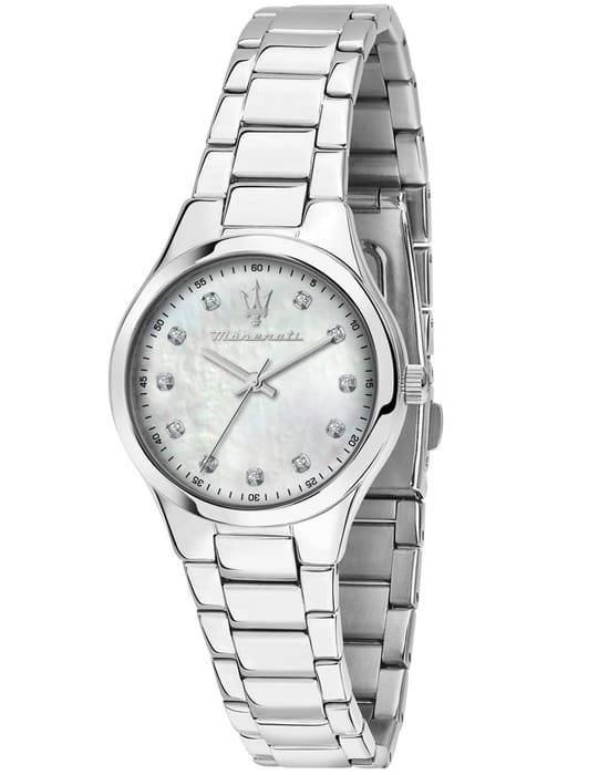 Женские часы Maserati R8853151504, кварцевый механизм с высокой точностью. Минеральное стеклоМинеральное стеклоМинеральное стекло представляет собой искусственно выращенный минерал кварца. Такое стекло отличается особой устойчивостью к повреждениям и царапинам. Уступает по некоторым качествам сапфировому стеклу. устойчивое к мелким механическим повреждениям. Класс водозащиты: 50 метров, позволит защитить корпус от случайных брызг или капель дождя. Корпус часов изготовлен из стали.