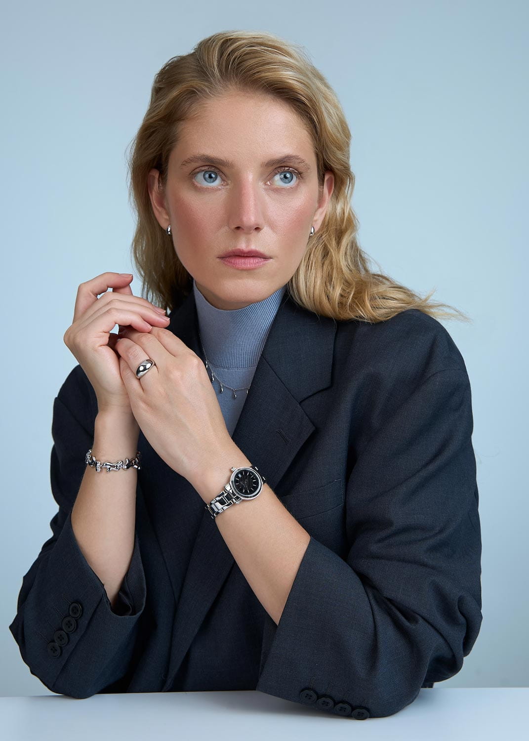 Женские кварцевые часы Mathey-Tissot City Metal D31186MABR — это стильное сочетание элегантности и современного дизайна. Изящный корпус выполнен из нержавеющей стали 316L серебристого цвета, что придаст образу женственности и романтизма. Изысканный циферблат с метками в виде римских цифр придает модели особый блеск. Циферблат защищен минеральным стекломМинеральное стеклоМинеральное стекло представляет собой искусственно выращенный минерал кварца. Такое стекло отличается особой устойчивостью к повреждениям и царапинам. Уступает по некоторым качествам сапфировому стеклу. с сапфировым покрытием, обеспечивающий устойчивость к царапинам. Окошко даты находится в положении 3 часа. Часы оснащены надежным кварцевым механизмом. Стальной браслет на раскладной застёжкеРаскладная застёжкаТакой тип застёжки используется только на браслетах из металла. Она никогда не раскрывается полностью, происходит разделение на 2 и более частей. Раскладывающая застёжка снизит вероятность потери часов к минимуму., гарантирует комфортное и безопасное ношение. Класс водозащиты: 30 метров позволит защитить корпус от случайных брызг или капель дождя. Mathey-Tissot — отличный выбор для тех, кто ценит утонченность и качество.