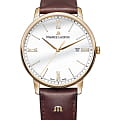 Коричневый кожаный ремешок с логотипом Maurice Lacroix оснащён системой быстрой замены, обеспечивающей удобство и комфортное ношение.