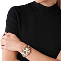 Женские американские часы-хронографХронографФункция позволяет измерять отрезки времени с особой точностью: часы, минуты, секунды. Верным признаком хронографа является наличие на циферблате 3 дополнительных окошек-счётчиков. с секундомеромСекундомерСекундоме́р — прибор, способный измерять интервалы времени с точностью до долей секунды. и с минеральным стекломМинеральное стеклоМинеральное стекло представляет собой искусственно выращенный минерал кварца. Такое стекло отличается особой устойчивостью к повреждениям и царапинам. Уступает по некоторым качествам сапфировому стеклу. Michael Kors Lexington MK7217, кварцевый механизм с высокой точностью. Корпус часов изготовлен из нержавеющей стали с PVD-покрытиемPVDУльтратонкое покрытие наносится в технике вакуумного напыления, сочетает в себе нитрид титана особой прочности со слоем золота или оксида хрома. Несёт в себе декоративную или защитную функцию.. БезельБезельВнешний ободок, закрепляющий стекло. В спортивных часах так называется поворотное кольцо с делениями на циферблате, выполняет роль таймера – замеряет отрезки времени на шкале. Неподвижный безель – элемент декора. Однонаправленно вращающийся безель на дайверских часах позволяет фиксировать моменты погружения и выныривания на поверхность. с алмазной гранью. Циферблат выполнен по технологии Sunray (солнечные лучи). Три дополнительных индикатора. Метки в виде штрихов и римских цифр. Окошко даты находится в положении 6 часов. Заводная головка с защитой. Класс водозащиты: 100 метров, позволит плавать, нырять и заниматься другими водными видами спорта. Стальной браслет с PVD-покрытиемPVDУльтратонкое покрытие наносится в технике вакуумного напыления, сочетает в себе нитрид титана особой прочности со слоем золота или оксида хрома. Несёт в себе декоративную или защитную функцию. на раскладной застёжкеРаскладная застёжкаТакой тип застёжки используется только на браслетах из металла. Она никогда не раскрывается полностью, происходит разделение на 2 и более частей. Раскладывающая застёжка снизит вероятность потери часов к минимуму..
