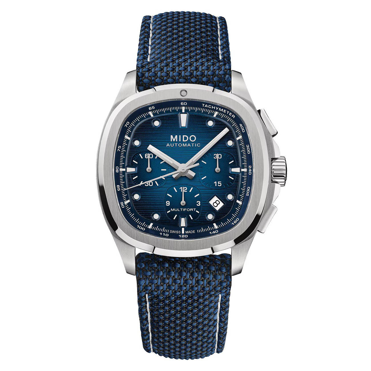 Мужские механические швейцарские часы Mido Multifort TV Chronograph M049.527.11.041.00, механический механизм с высокой точностью. Сапфировое стеклоСапфировое стеклоПрочный и надёжный материал из кристалла сапфира синтетического происхождения, характеризующийся особой твёрдостью и устойчивостью к царапинам и повреждениям. устойчивое к появлению царапин, обладающее высокой прозрачностью. Корпус часов изготовлен из нержавеющей стали. В механизм внедрена пружина баланса Nivachron™Nivachron™Специально разработанный инновационный сплав Nivachron™ повышает устойчивость часов к воздействию магнитных полей.. Стрелки с люминесцентным покрытиемЛюминесцентное покрытиеПозволяет считывать показания времени в темноте. Производители наносят на стрелки, часовые индексы, безель или поверхность циферблата светонакопительный состав, дающий холодное свечение.. Окошко даты в положении между 4 и 6 часами. Класс водозащиты: 100 метров, позволит плавать, нырять и заниматься другими водными видами спорта. Стальной браслет на раскладной застёжкеРаскладная застёжкаТакой тип застёжки используется только на браслетах из металла. Она никогда не раскрывается полностью, происходит разделение на 2 и более частей. Раскладывающая застёжка снизит вероятность потери часов к минимуму..Часы с функциями хронографаХронографФункция позволяет измерять отрезки времени с особой точностью: часы, минуты, секунды. Верным признаком хронографа является наличие на циферблате 3 дополнительных окошек-счётчиков. и тахиметраТахиметрРазмеченная шкала, располагается на ободке или безеле часов. Тахиметр позволяет рассчитать скорость на определённом участке пути, расстояние измеряется в километрах или милях.. Поставляются с дополнительным ремешком, что обеспечивает еще большую универсальность и комфорт.