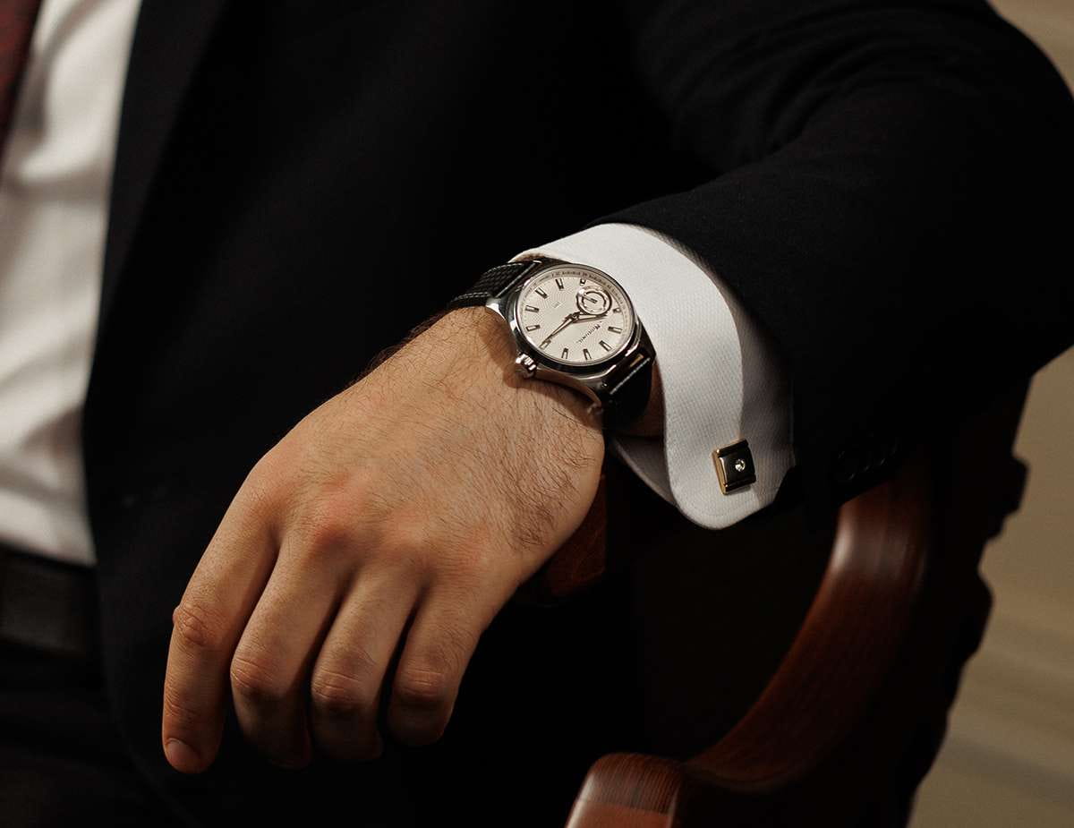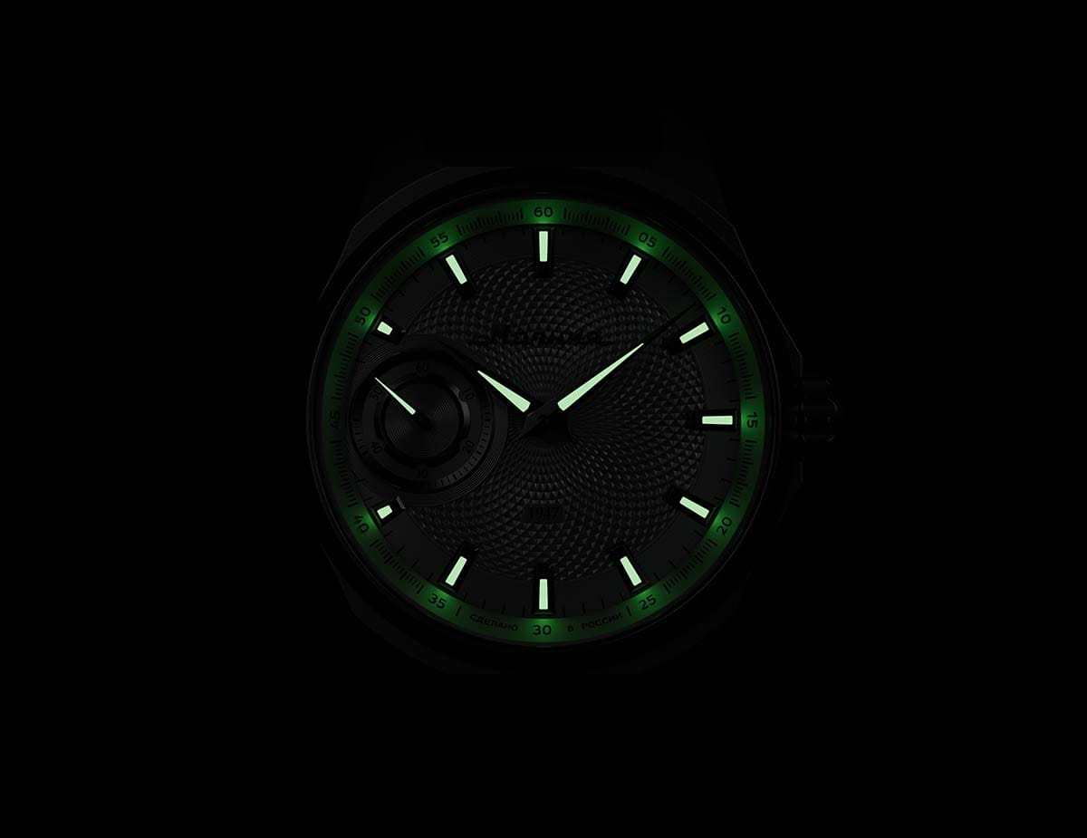 Мужские механические часы с ручным подзаводом — это аксессуар от легендарного бренда «МОЛНИЯ», созданный на Челябинском часовом заводе. Корпус диаметром 42 мм выполнен из нержавеющей стали 316L с зеркальной полировкой. БезельБезельВнешний ободок, закрепляющий стекло. В спортивных часах так называется поворотное кольцо с делениями на циферблате, выполняет роль таймера – замеряет отрезки времени на шкале. Неподвижный безель – элемент декора. Однонаправленно вращающийся безель на дайверских часах позволяет фиксировать моменты погружения и выныривания на поверхность. также выполнен из стали с зеркальной отделкой. Циферблат белого цвета оформлен индексами и стрелками. Малая секундная стрелка вынесена на позицию 9 часов. Стрелки и метки с люминесцентным покрытиемЛюминесцентное покрытиеПозволяет считывать показания времени в темноте. Производители наносят на стрелки, часовые индексы, безель или поверхность циферблата светонакопительный состав, дающий холодное свечение. Super-LumiNova, обеспечивающим хорошую читаемость в темноте. Циферблат защищён сапфировым стекломСапфировое стеклоПрочный и надёжный материал из кристалла сапфира синтетического происхождения, характеризующийся особой твёрдостью и устойчивостью к царапинам и повреждениям. с антибликовым покрытиемАнтибликовое покрытиеСлой оксида металла в 0,13-0,3 микрон, благодаря которому стекло часов не бликует и не отражает свет. Антибликовое покрытие уменьшает отражение света в 10 раз, обеспечивая отличную читаемость показателей циферблата.. Механизм — мануфактурный калибр 3603, собранный вручную, с запасом хода до 40 часов. Прозрачная задняя крышка позволяет наблюдать за работой механизма. Часы оснащены силиконовым ремешком чёрного цвета с классической пряжкой, а также системой быстрой замены. Водонепроницаемость 100 м позволяет использовать часы для плавания и повседневного ношения. Идеальный выбор для тех, кто ценит российское качество и традиции.