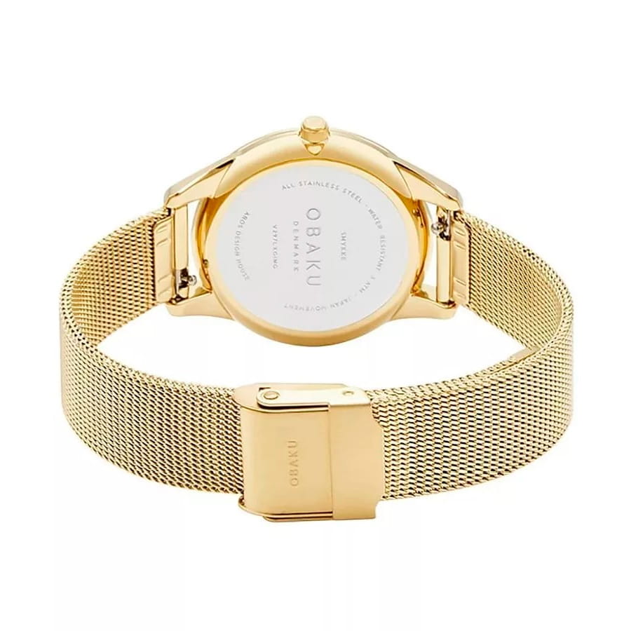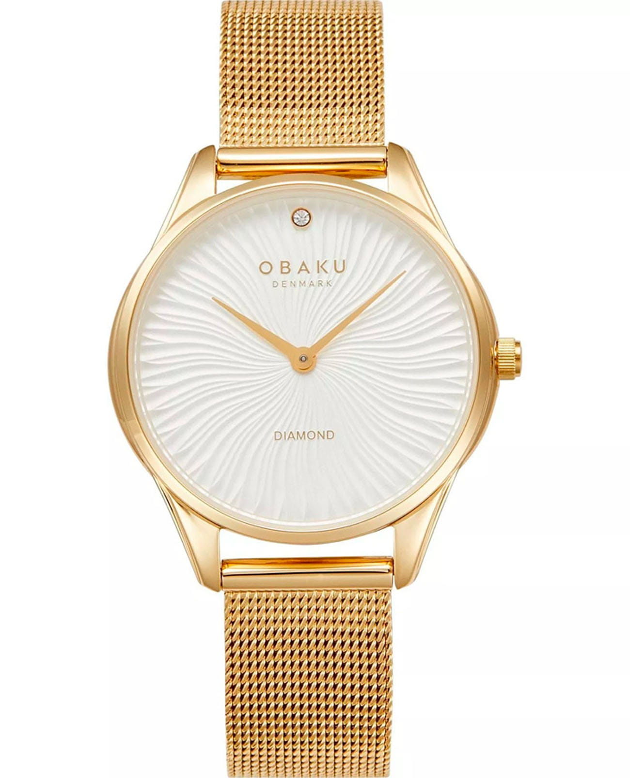 Женские наручные часы Obaku Diamond V297LXGIMG, кварцевый механизм с высокой точностью. Минеральное стеклоМинеральное стеклоМинеральное стекло представляет собой искусственно выращенный минерал кварца. Такое стекло отличается особой устойчивостью к повреждениям и царапинам. Уступает по некоторым качествам сапфировому стеклу. устойчивое к мелким механическим повреждениям. Корпус и браслет часов изготовлены из нержавеющей стали с IP-покрытиемIP-покрытиеМетод ионного напыления. Демонстрирует повышенную устойчивость к истиранию, окислению и химическим веществам. Под воздействием высокого давления и температуры около 1500°C молекулы металла надёжно соединяются с частицами корпуса часов.. Класс водозащиты: 30 метров, позволит защитить корпус от случайных брызг или капель дождя. Стальной браслет миланского плетения на раскладном замкеРаскладной замокДанный вариант застежки используется только на часах с металлическим браслетом. Отличительная особенность такого крепления в том, что длина браслета становится универсальной и вы можете самостоятельно отрегулировать нужный вам размер – застежка просто двигается по браслету часов. с IP-покрытиемIP-покрытиеМетод ионного напыления. Демонстрирует повышенную устойчивость к истиранию, окислению и химическим веществам. Под воздействием высокого давления и температуры около 1500°C молекулы металла надёжно соединяются с частицами корпуса часов.. Часы украшены бриллиантом.