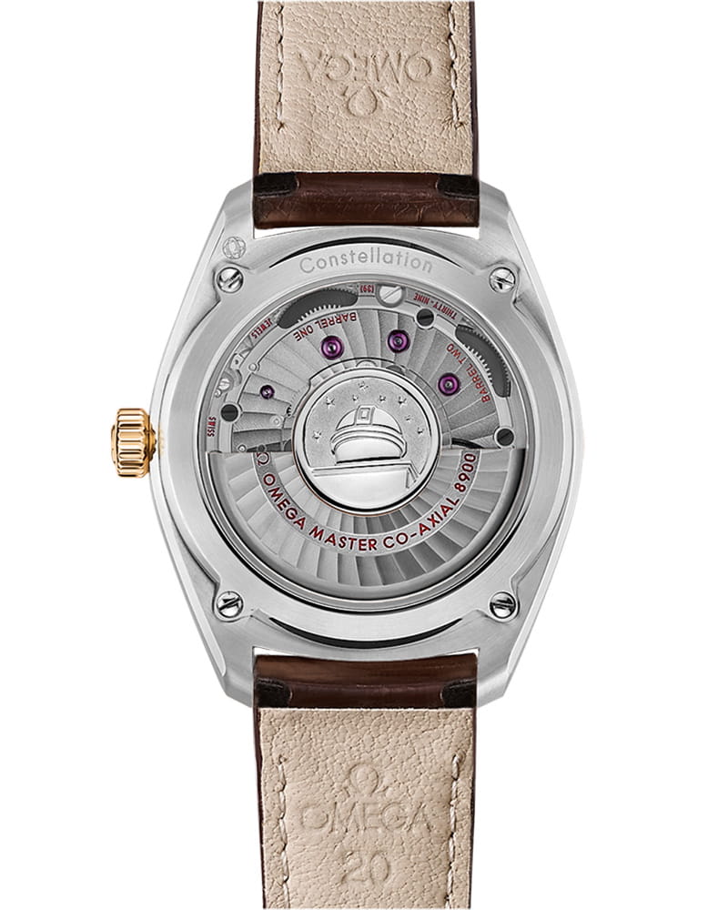 18 карат оживляет циферблат: фирменная звезда, стрелки и индексы с люминесцентным покрытиемЛюминесцентное покрытиеПозволяет считывать показания времени в темноте. Производители наносят на стрелки, часовые индексы, безель или поверхность циферблата светонакопительный состав, дающий холодное свечение. мерцают подобно звездам в сумерках. Часы дополнены элегантным коричневым кожаным ремешком, а их пульсом служит коаксиальный хронометр OMEGA Master Chronometer 8900 с революционной антимагнитной технологией - символом нового времени в часовом деле.