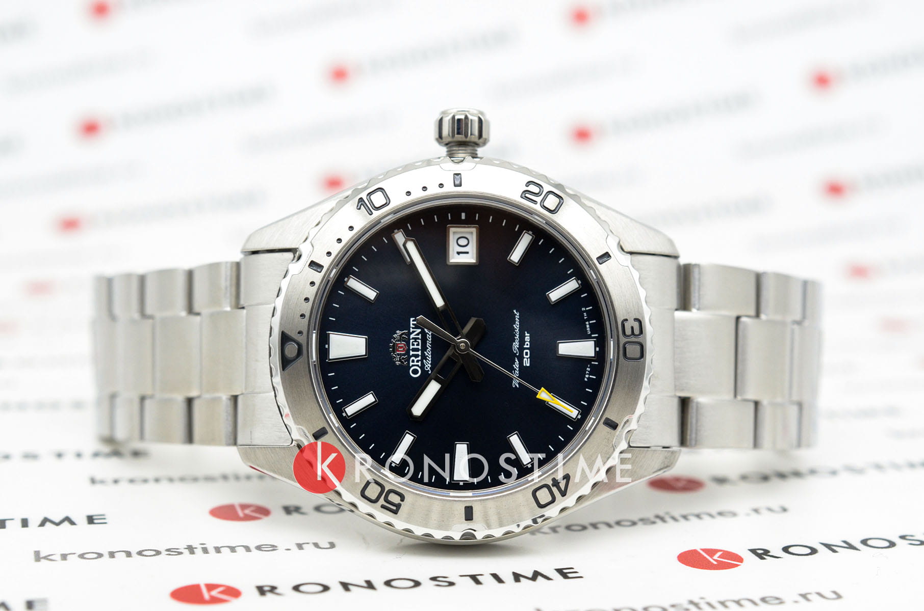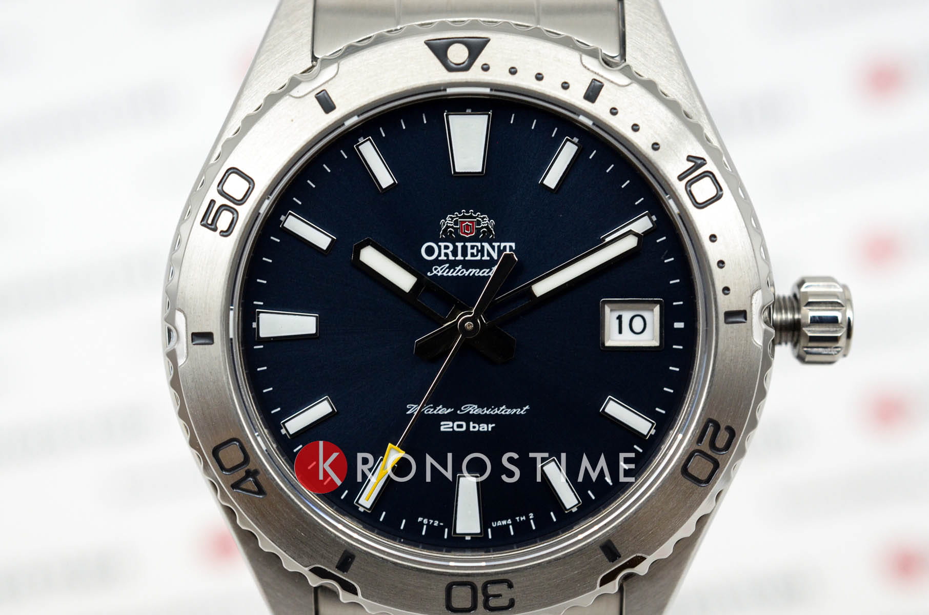 Orient RA-AC0Q02L — стильные и надёжные часы, созданные для активного образа жизни и водных приключений. Корпус диаметром 40 мм выполнен из нержавеющей стали, что обеспечивает прочность и долговечность. Однонаправленный вращающийся безельБезельВнешний ободок, закрепляющий стекло. В спортивных часах так называется поворотное кольцо с делениями на циферблате, выполняет роль таймера – замеряет отрезки времени на шкале. Неподвижный безель – элемент декора. Однонаправленно вращающийся безель на дайверских часах позволяет фиксировать моменты погружения и выныривания на поверхность. позволяет точно отслеживать время погружения. Синий циферблат украшен накладными часовыми индексами и стрелками с люминесцентным покрытиемЛюминесцентное покрытиеПозволяет считывать показания времени в темноте. Производители наносят на стрелки, часовые индексы, безель или поверхность циферблата светонакопительный состав, дающий холодное свечение., что гарантирует отличную читаемость. Окошко даты расположено на отметке «3 часа» для удобства. Защиту циферблата обеспечивает сапфировое стеклоСапфировое стеклоПрочный и надёжный материал из кристалла сапфира синтетического происхождения, характеризующийся особой твёрдостью и устойчивостью к царапинам и повреждениям., устойчивое к царапинам. Внутри установлен автоматический механизм Orient калибра F6722 с возможностью ручного завода и функцией стоп-секунды, обеспечивающий точность хода и запас энергии до 40 часов. Часы укомплектованы браслетом из нержавеющей стали, а раскладная застёжкаРаскладная застёжкаТакой тип застёжки используется только на браслетах из металла. Она никогда не раскрывается полностью, происходит разделение на 2 и более частей. Раскладывающая застёжка снизит вероятность потери часов к минимуму. гарантирует надёжную фиксацию на запястье. Водонепроницаемость 200 метров делает модель отличным выбором для дайвинга и активного отдыха.