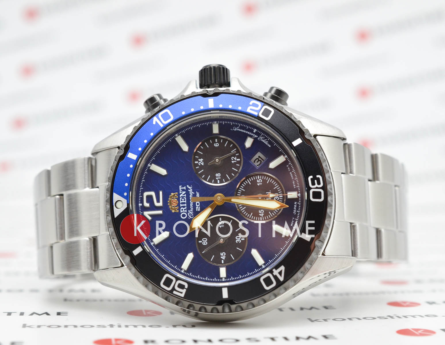 Часы Orient RA-TX0208L — это лимитированная модель, выпущенная в честь 20-летия серии Mako, ограниченная 3 000 экземплярами. Корпус из нержавеющей стали диаметром 42,8 мм оснащён однонаправленным БезелемБезельВнешний ободок, закрепляющий стекло. В спортивных часах так называется поворотное кольцо с делениями на циферблате, выполняет роль таймера – замеряет отрезки времени на шкале. Неподвижный безель – элемент декора. Однонаправленно вращающийся безель на дайверских часах позволяет фиксировать моменты погружения и выныривания на поверхность. чёрно-синего цвета, что подчеркивает их дайверский стиль. Градиентный голубой циферблат с арабской цифрой на отметке «12 часов» и люминесцентными стрелками и меткамиЛюминесцентное покрытиеПозволяет считывать показания времени в темноте. Производители наносят на стрелки, часовые индексы, безель или поверхность циферблата светонакопительный состав, дающий холодное свечение. обеспечивает отличную читаемость в любых условиях. Три субциферблата включают функции хронографа и 24-часового индикатора. Часы оснащены Orient Cal. VS752, который поддерживает запас хода до 6 месяцев при полном заряде. Сапфировое стеклоСапфировое стеклоПрочный и надёжный материал из кристалла сапфира синтетического происхождения, характеризующийся особой твёрдостью и устойчивостью к царапинам и повреждениям. защищает циферблат от царапин, сохраняя идеальный внешний вид. Браслет из нержавеющей стали с раскладной застёжкой обеспечивает комфортное ношение и надёжную фиксацию. Водонепроницаемость до 200 метров делает часы подходящими для плавания и дайвинга. Orient RA-TX0208L — это сочетание исключительного стиля, надёжности и ограниченного выпуска, что делает их идеальным выбором для ценителей часового искусства.