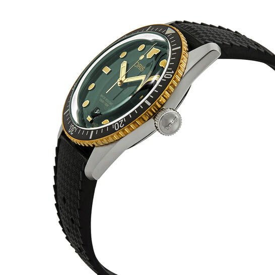 Oris 01 733 7707 4357-07 4 20 18 Divers Sixty-Five – это часы, сочетающие в себе классический дизайн и современную функциональность. Корпус из нержавеющей стали диаметром 40 мм идеально подходит для тех, кто ценит утонченность и стиль. Сапфировое стеклоСапфировое стеклоПрочный и надёжный материал из кристалла сапфира синтетического происхождения, характеризующийся особой твёрдостью и устойчивостью к царапинам и повреждениям. с антибликовым покрытием защищает циферблат от царапин и обеспечивает отличную читаемость при любом освещении. Каучуковый браслет на стандартной застёжке идеально дополняет дизайн часов, обеспечивая комфортное ношение. Стрелки и метки с люминесцентным покрытиемЛюминесцентное покрытиеПозволяет считывать показания времени в темноте. Производители наносят на стрелки, часовые индексы, безель или поверхность циферблата светонакопительный состав, дающий холодное свечение. позволят следить за временем даже в полной темноте. Вращающийся безельБезельВнешний ободок, закрепляющий стекло. В спортивных часах так называется поворотное кольцо с делениями на циферблате, выполняет роль таймера – замеряет отрезки времени на шкале. Неподвижный безель – элемент декора. Однонаправленно вращающийся безель на дайверских часах позволяет фиксировать моменты погружения и выныривания на поверхность. с бронзовым поворотным кольцом. Часы оснащены центральной секундной стрелкой и окошком даты в положении «6 часов», что делает их функциональными для повседневного использования. Автоматический механизм на базе калибра 733 с 38-часовым запасом хода. Часы обладают водонепроницаемостью в 10 бар (100 метров). Механизм с автоподзаводом, скрытый внутри, является сердцем этих часов, гарантируя безупречную работу на протяжении многих лет.