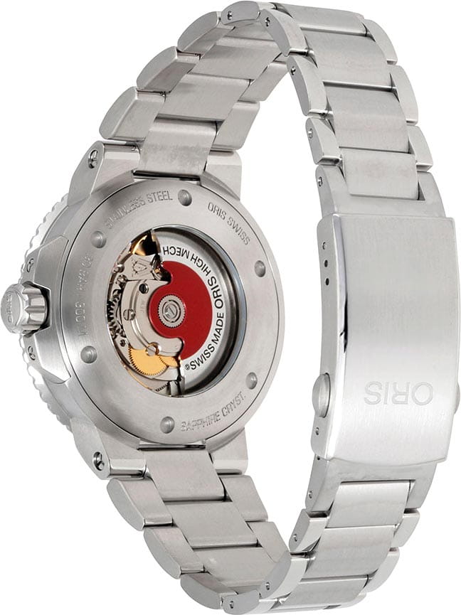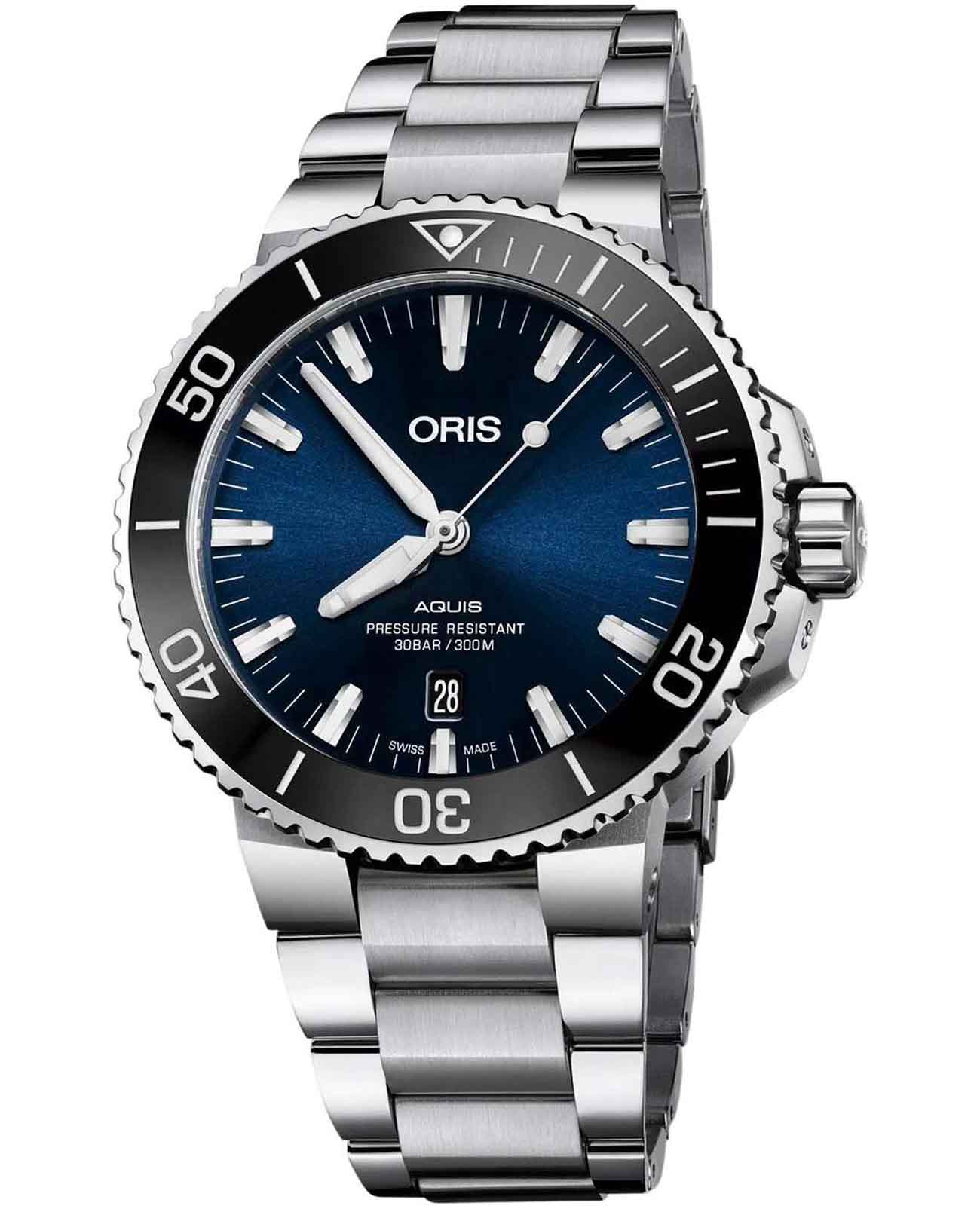 Oris 01 733 7730 4135-07 8 24 05PEB Aquis – это воплощение швейцарского часового мастерства, где традиции встречаются с инновациями. Эти механические наручные часы созданы для тех, кто ценит точность, надежность и безупречный стиль. Корпус из нержавеющей стали диаметром 43,5 мм идеально сбалансирован и элегантен. Циферблат выполнен по технологии Sunray (солнечные лучи). Вращающийся керамический безельБезельВнешний ободок, закрепляющий стекло. В спортивных часах так называется поворотное кольцо с делениями на циферблате, выполняет роль таймера – замеряет отрезки времени на шкале. Неподвижный безель – элемент декора. Однонаправленно вращающийся безель на дайверских часах позволяет фиксировать моменты погружения и выныривания на поверхность.. Сапфировое стеклоСапфировое стеклоПрочный и надёжный материал из кристалла сапфира синтетического происхождения, характеризующийся особой твёрдостью и устойчивостью к царапинам и повреждениям. с антибликовым покрытием защищает циферблат от царапин и обеспечивает отличную читаемость при любом освещении. Окошко даты находится в положении 6 часов. Быстрая установка даты. Браслет из нержавеющей стали идеально дополняют дизайн часов, обеспечивая комфортное ношение. Люминесцентное покрытиеЛюминесцентное покрытиеПозволяет считывать показания времени в темноте. Производители наносят на стрелки, часовые индексы, безель или поверхность циферблата светонакопительный состав, дающий холодное свечение. стрелок и меток позволит вам следить за временем даже в полной темноте. Завинчивающаяся прозрачная задняя крышка с сапфировым стеклом. Раскладная застёжкаРаскладная застёжкаТакой тип застёжки используется только на браслетах из металла. Она никогда не раскрывается полностью, происходит разделение на 2 и более частей. Раскладывающая застёжка снизит вероятность потери часов к минимуму. с удлинением для дайверовУдлинение для дайверовЗастёжка с удлинением для дайверов представляет собой безопасное крепление, которое позволяет надевать часы поверх гидрокостюма. Гибкая застёжка удлиняется на 1-2 миллиметра..