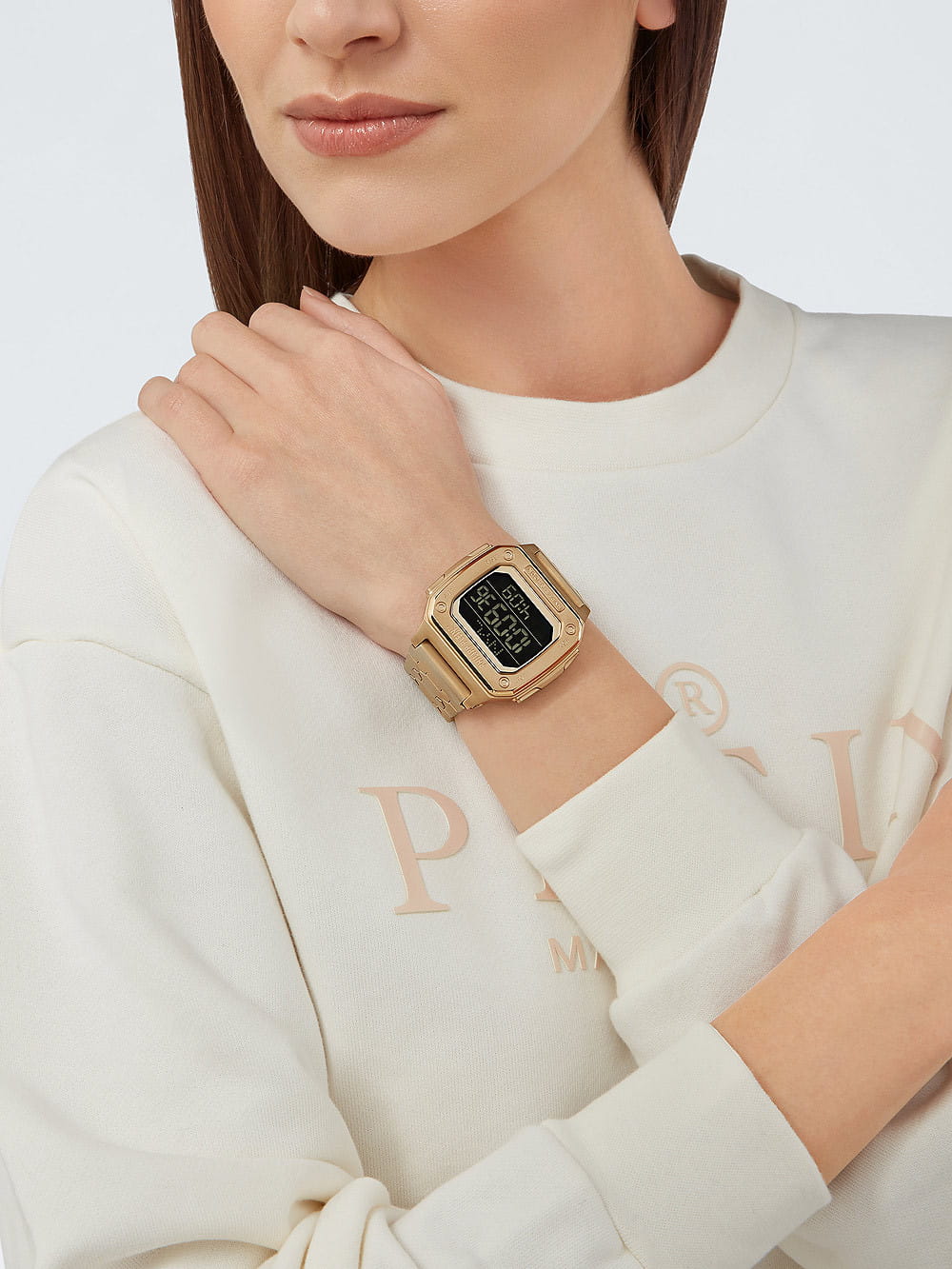 Электронные унисекс часы-хронографХронографФункция позволяет измерять отрезки времени с особой точностью: часы, минуты, секунды. Верным признаком хронографа является наличие на циферблате 3 дополнительных окошек-счётчиков. Philipp Plein Hyper Shock PWHAA1021, электронный механизм с высокой точностью. Класс водозащиты: 50 метров, позволит защитить корпус от случайных брызг или капель дождя. Прямоугольный корпус выполнен из нержавеющей стали с IP-покрытиемIP-покрытиеМетод ионного напыления. Демонстрирует повышенную устойчивость к истиранию, окислению и химическим веществам. Под воздействием высокого давления и температуры около 1500°C молекулы металла надёжно соединяются с частицами корпуса часов. черного цвета. Браслет из нержавеющей стали шириной 22 мм, застёжка «бабочка» с кнопкамиЗастёжка "бабочка"Такой вид застёжки дополняется предохранителями, помогающими избежать случайного раскрытия браслета. Обладают изящным исполнением. .