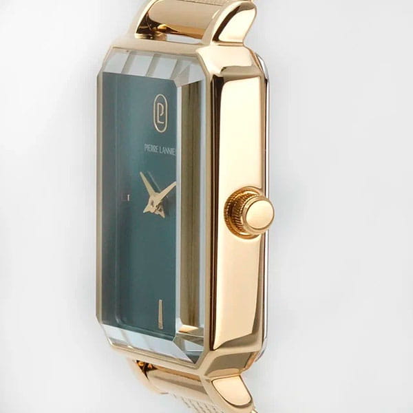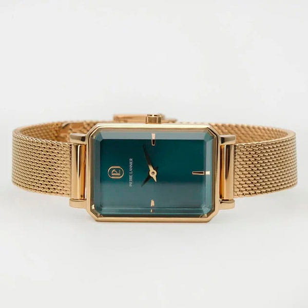 Женские кварцевые часы Pierre Lannier — это элегантный аксессуар с французским дизайном. Корпус прямоугольной формы размером 21 мм и толщиной 7,8 мм выполнен из нержавеющей стали с IP-покрытиемIP-покрытиеМетод ионного напыления. Демонстрирует повышенную устойчивость к истиранию, окислению и химическим веществам. Под воздействием высокого давления и температуры около 1500°C молекулы металла надёжно соединяются с частицами корпуса часов. цвета жёлтого золота. Циферблат зелёного цвета оформлен стрелками. Циферблат защищён минеральным стекломМинеральное стеклоМинеральное стекло представляет собой искусственно выращенный минерал кварца. Такое стекло отличается особой устойчивостью к повреждениям и царапинам. Уступает по некоторым качествам сапфировому стеклу., устойчивым к мелким механическим повреждениям. Часы оснащены стальным браслетом миланского плетения с IP-покрытиемIP-покрытиеМетод ионного напыления. Демонстрирует повышенную устойчивость к истиранию, окислению и химическим веществам. Под воздействием высокого давления и температуры около 1500°C молекулы металла надёжно соединяются с частицами корпуса часов. на раскладной застёжкеРаскладная застёжкаТакой тип застёжки используется только на браслетах из металла. Она никогда не раскрывается полностью, происходит разделение на 2 и более частей. Раскладывающая застёжка снизит вероятность потери часов к минимуму.. В комплект входит дополнительный кожаный ремешок. Водонепроницаемость 30 м позволяет использовать часы в повседневных условиях. Идеальный выбор для тех, кто ценит французский стиль и универсальный дизайн.