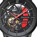 Pierre Lannier Paddock 344A459 — элегантная модель с выразительным спортивным характером. Корпус диаметром 43 мм выполнен из нержавеющей стали с матовым PVD-покрытиемPVDУльтратонкое покрытие наносится в технике вакуумного напыления, сочетает в себе нитрид титана особой прочности со слоем золота или оксида хрома. Несёт в себе декоративную или защитную функцию., подчёркивающим технологичный стиль и динамику дизайна. Циферблат частично скелетонизирован, открывая механизм и баланс, что придаёт модели техническую выразительность. Часовые метки и стрелки покрыты люминесцентным покрытиемЛюминесцентное покрытиеПозволяет считывать показания времени в темноте. Производители наносят на стрелки, часовые индексы, безель или поверхность циферблата светонакопительный состав, дающий холодное свечение., обеспечивая хорошую читаемость в любых условиях. Циферблат защищён прочным минеральным стекломМинеральное стеклоМинеральное стекло представляет собой искусственно выращенный минерал кварца. Такое стекло отличается особой устойчивостью к повреждениям и царапинам. Уступает по некоторым качествам сапфировому стеклу., устойчивым к царапинам и повседневным воздействиям. Водонепроницаемость до 50 метров позволяет использовать часы в различных жизненных ситуациях без ограничений. Внутри — автоматический механизм с автоподзаводом, не требующий подзарядки при регулярном ношении. Стальной браслет с PVD-покрытиемPVDУльтратонкое покрытие наносится в технике вакуумного напыления, сочетает в себе нитрид титана особой прочности со слоем золота или оксида хрома. Несёт в себе декоративную или защитную функцию. на раскладной застёжкеРаскладная застёжкаТакой тип застёжки используется только на браслетах из металла. Она никогда не раскрывается полностью, происходит разделение на 2 и более частей. Раскладывающая застёжка снизит вероятность потери часов к минимуму. обеспечивающей комфорт и надёжную фиксацию. Paddock — гармоничное сочетание механики, изящества и современного дизайна, созданное для тех, кто ценит уверенность и индивидуальность в деталях.