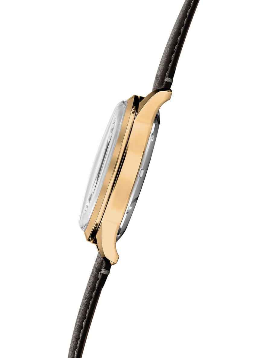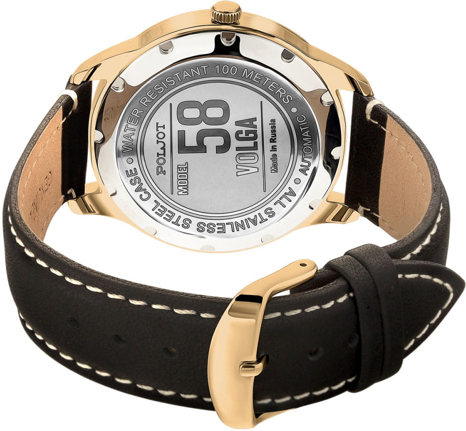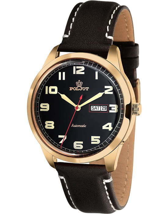 Poljot 8205.589025 — классические механические мужские часы с автоподзаводом, сочетающие традиции отечественного часового производства и лаконичный современный стиль. Корпус из нержавеющей стали с PVD-покрытиемPVDУльтратонкое покрытие наносится в технике вакуумного напыления, сочетает в себе нитрид титана особой прочности со слоем золота или оксида хрома. Несёт в себе декоративную или защитную функцию. подчёркивает надёжность и сдержанную элегантность модели, а глубокий циферблат с минималистичной разметкой, аккуратным окном даты и секундным акцентом придаёт образу динамичность. Механизм с автоподзаводом обеспечивает стабильную работу и плавный ход стрелок, подчёркивая инженерную точность исполнения. Прочное минеральное стеклоМинеральное стеклоМинеральное стекло представляет собой искусственно выращенный минерал кварца. Такое стекло отличается особой устойчивостью к повреждениям и царапинам. Уступает по некоторым качествам сапфировому стеклу. защищает циферблат, а ремешок из натуральной кожи с классической текстурой крокодила обеспечивает комфорт и благородный внешний вид. Poljot — воплощение надёжности, традиций и мужской элегантности, созданное для тех, кто ценит качество и уверенность в каждой детали.