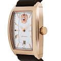 Мужские кварцевые часы из коллекции Президент — это сочетание строгого дизайна и статусного вида. Корпус прямоугольной формы выполнен в цвете розовое золото с PVD-покрытиемPVDУльтратонкое покрытие наносится в технике вакуумного напыления, сочетает в себе нитрид титана особой прочности со слоем золота или оксида хрома. Несёт в себе декоративную или защитную функцию. и защищён минеральным стекломМинеральное стеклоМинеральное стекло представляет собой искусственно выращенный минерал кварца. Такое стекло отличается особой устойчивостью к повреждениям и царапинам. Уступает по некоторым качествам сапфировому стеклу.. Циферблат дополнен окошком даты, расположенным на отметке 3 часа. Часы оснащены кожаным ремешком, обеспечивающим комфорт при ношении. Механизм — японский кварцевый Miyota, гарантирующий точное отсчёт времени. Водонепроницаемость 30 м позволяет использовать часы в повседневных условиях, защищая от случайных брызг и капель дождя. Комплектация включает подарочный футляр, паспорт с гарантийным талоном и фирменный пакет.