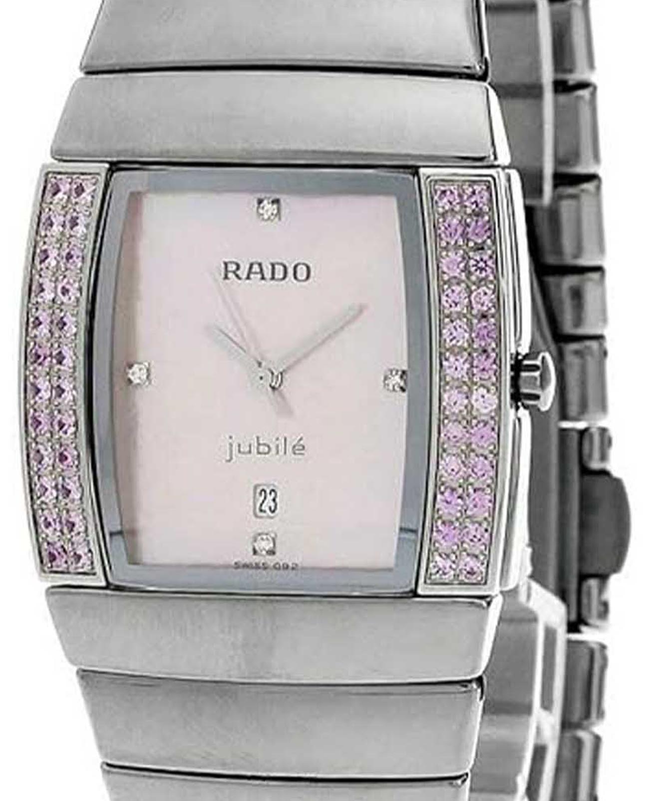 Часы Rado Sintra R13581922, произведение искусства и технологическое чудо, станут прекрасным дополнением к коллекции. Эти швейцарские часы оснащены кварцевым механизмом с указателем даты и тремя стрелками, заключенным в корпус из нержавеющей стали. Браслет изготовлен из высокотехнологичной керамикиВысокотехнологичная керамикаИнновационный запатентованный Rado материал с гладкой или матовой поверхностью. Керамика за счёт кристаллической структуры обладает повышенной устойчивостью от возникновения царапин. Материал способен принимать температуру тела человека, обеспечивая невероятный комфорт при ношении. с раскладной застёжкойРаскладная застёжкаТакой тип застёжки используется только на браслетах из металла. Она никогда не раскрывается полностью, происходит разделение на 2 и более частей. Раскладывающая застёжка снизит вероятность потери часов к минимуму.. Корпус украшен 48 бриллиантами (0,50 карата). Сапфировое стеклоСапфировое стеклоПрочный и надёжный материал из кристалла сапфира синтетического происхождения, характеризующийся особой твёрдостью и устойчивостью к царапинам и повреждениям. устойчивое к появлению царапин, обладающее высокой прозрачностью. Класс водозащиты: 30 метров, позволит защитить корпус от случайных брызг или капель дождя.