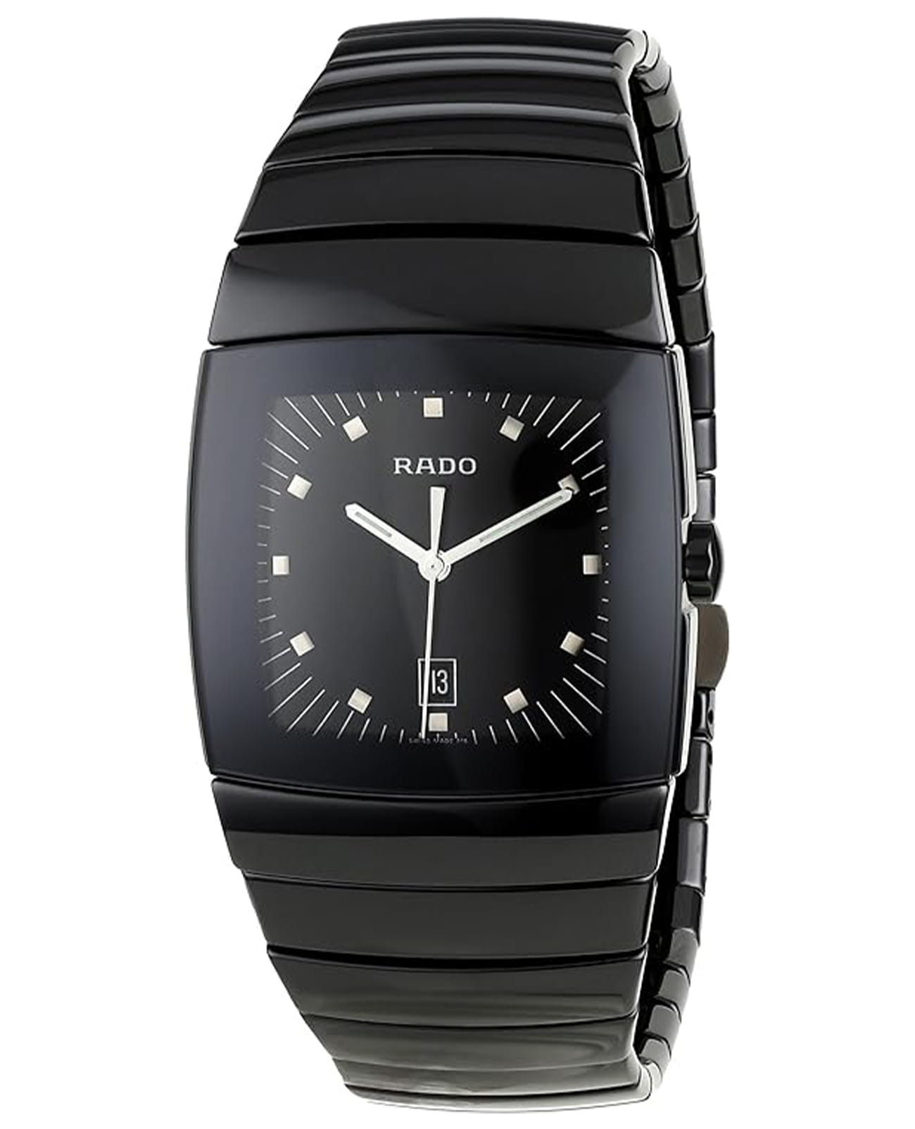 Часы Rado Sintra R13724162, произведение искусства и технологическое чудо, станут прекрасным дополнением к коллекции любого мужчины. Эти швейцарские часы оснащены кварцевым механизмом с указателем даты и тремя стрелками, заключенным в бочкообразный корпус из высокотехнологичной керамикиВысокотехнологичная керамикаИнновационный запатентованный Rado материал с гладкой или матовой поверхностью. Керамика за счёт кристаллической структуры обладает повышенной устойчивостью от возникновения царапин. Материал способен принимать температуру тела человека, обеспечивая невероятный комфорт при ношении.. Сапфировое стеклоСапфировое стеклоПрочный и надёжный материал из кристалла сапфира синтетического происхождения, характеризующийся особой твёрдостью и устойчивостью к царапинам и повреждениям. устойчивое к появлению царапин, обладающее высокой прозрачностью. Класс водозащиты: 30 метров, позволит защитить корпус от случайных брызг или капель дождя.