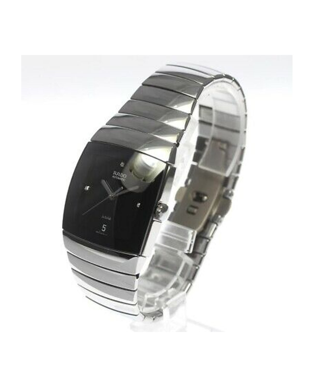 Швейцарские мужские механические швейцарские часы с автоподзаводом Rado Sintra R13875712. Сапфировое стеклоСапфировое стеклоПрочный и надёжный материал из кристалла сапфира синтетического происхождения, характеризующийся особой твёрдостью и устойчивостью к царапинам и повреждениям. устойчивое к появлению царапин, обладающее высокой прозрачностью. Корпус часов изготовлен из высокотехнологичной керамикиВысокотехнологичная керамикаИнновационный запатентованный Rado материал с гладкой или матовой поверхностью. Керамика за счёт кристаллической структуры обладает повышенной устойчивостью от возникновения царапин. Материал способен принимать температуру тела человека, обеспечивая невероятный комфорт при ношении.. Окошко даты находится в положении 6 часов. Циферблат украшен бриллиантами. Класс водозащиты: 30 метров, позволит защитить корпус от случайных брызг или капель дождя. Браслет из высокотехнологичной керамикиВысокотехнологичная керамикаИнновационный запатентованный Rado материал с гладкой или матовой поверхностью. Керамика за счёт кристаллической структуры обладает повышенной устойчивостью от возникновения царапин. Материал способен принимать температуру тела человека, обеспечивая невероятный комфорт при ношении. на раскладной застёжкеРаскладная застёжкаТакой тип застёжки используется только на браслетах из металла. Она никогда не раскрывается полностью, происходит разделение на 2 и более частей. Раскладывающая застёжка снизит вероятность потери часов к минимуму..
