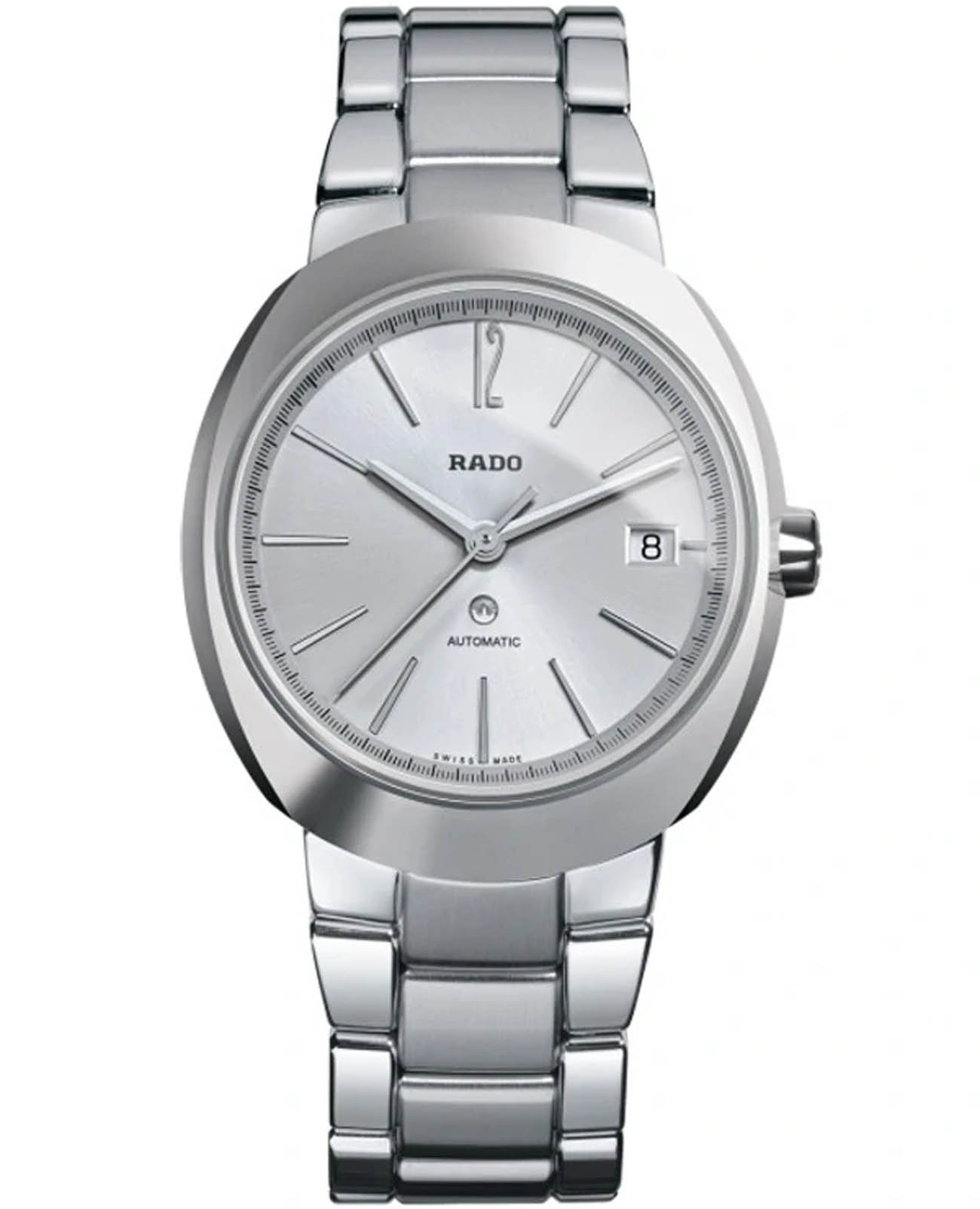 Мужские механические швейцарские часы Rado Rado D-Star R15513103. Сапфировое стеклоСапфировое стеклоПрочный и надёжный материал из кристалла сапфира синтетического происхождения, характеризующийся особой твёрдостью и устойчивостью к царапинам и повреждениям. устойчивое к мелким механическим повреждениям. Корпус часов изготовлен из нержавеющей стали. Окошко даты находится в положении 3 часа.  Класс водозащиты: 100 метров, позволит плавать, нырять и заниматься другими водными видами спорта. Браслет из нержавеющей стали на раскладной застёжкеРаскладная застёжкаТакой тип застёжки используется только на браслетах из металла. Она никогда не раскрывается полностью, происходит разделение на 2 и более частей. Раскладывающая застёжка снизит вероятность потери часов к минимуму..