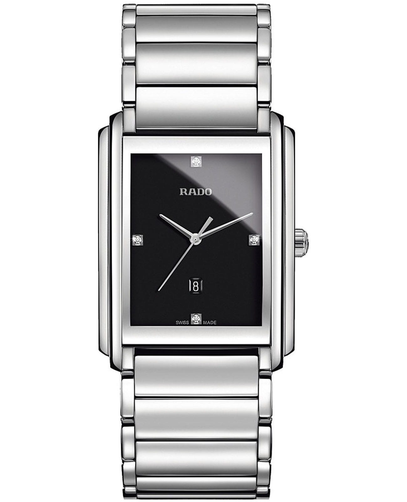 Женские часы Rado Integral Diamonds R20997713 с надёжным кварцевым механизмом. Сапфировое стеклоСапфировое стеклоПрочный и надёжный материал из кристалла сапфира синтетического происхождения, характеризующийся особой твёрдостью и устойчивостью к царапинам и повреждениям. устойчивое к мелким механическим повреждениям. Корпус выполнен из нержавеющей стали. Циферблат инкрустирован бриллиантами. Окошко даты находится в положении 6 часов. Класс водозащиты: 50 метров, позволит защитить корпус от случайных брызг или капель дождя. Стальной браслет на раскладной застёжкеРаскладная застёжкаТакой тип застёжки используется только на браслетах из металла. Она никогда не раскрывается полностью, происходит разделение на 2 и более частей. Раскладывающая застёжка снизит вероятность потери часов к минимуму.. Бриллианты отмечают позиции 3, 6, 9 и 12 часов.