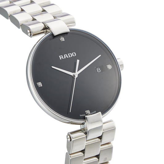 Швейцарские женские часы Rado Coupole R22852703, кварцевый механизм с высокой точностью. Сапфировое стеклоСапфировое стеклоПрочный и надёжный материал из кристалла сапфира синтетического происхождения, характеризующийся особой твёрдостью и устойчивостью к царапинам и повреждениям. устойчивое к появлению царапин, обладающее высокой прозрачностью. Корпус часов изготовлен из нержавеющей стали. Окошко даты находится в положении 3 часа. Класс водозащиты: 50 метров, позволит защитить корпус от случайных брызг или капель дождя. Стальной браслет на застёжке-бабочке с кнопкамиЗастёжка "бабочка"Такой вид застёжки дополняется предохранителями, помогающими избежать случайного раскрытия браслета. Обладают изящным исполнением. .