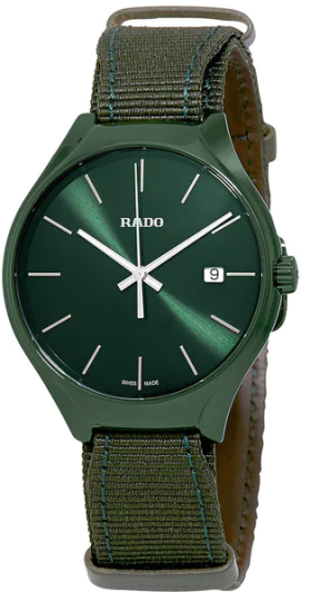 Мужские кварцевые швейцарские часы Rado True R27233316. Корпус часов изготовлен из высокотехнологичной керамикиВысокотехнологичная керамикаИнновационный запатентованный Rado материал с гладкой или матовой поверхностью. Керамика за счёт кристаллической структуры обладает повышенной устойчивостью от возникновения царапин. Материал способен принимать температуру тела человека, обеспечивая невероятный комфорт при ношении.. Тканевый ремешок на стандартной застёжке. Сапфировое стеклоСапфировое стеклоПрочный и надёжный материал из кристалла сапфира синтетического происхождения, характеризующийся особой твёрдостью и устойчивостью к царапинам и повреждениям. устойчивое к мелким механическим повреждениям. Класс водозащиты: 50 метров, позволит защитить корпус от случайных брызг или капель дождя. Окошко даты находится в положении 3 часа.