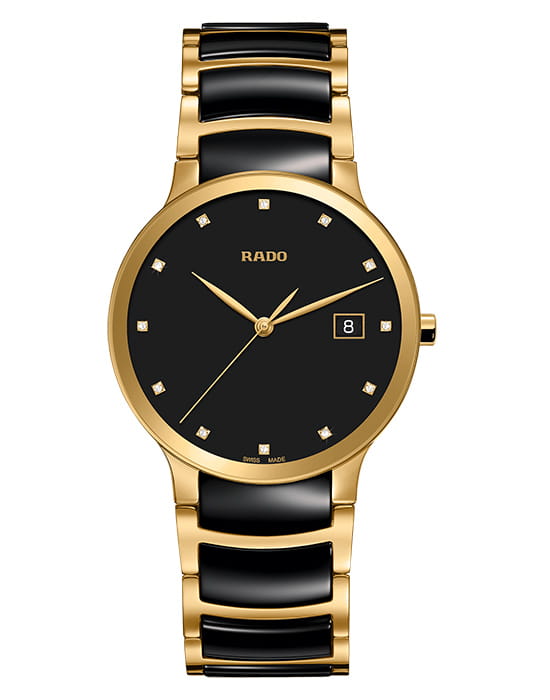 Аксессуар в золотом цвете станет достойным дополнением к образу солидного и делового мужчины. Это стильная деталь современного имиджа, особый шик ей придают 12 бриллиантов цвета Top Wesselton в 0,034 карат. Наручные часы с автоподзаводом работают за счёт калибра ETA C07.611, который отличается увеличенным запасом хода до 80 часов. Понаблюдать за движением частиц механизма можно через прозрачную заднюю крышку. Надёжный корпус из хирургической стали 316L. Браслет имеет вставки из высокотехнологичной керамикиВысокотехнологичная керамикаИнновационный запатентованный Rado материал с гладкой или матовой поверхностью. Керамика за счёт кристаллической структуры обладает повышенной устойчивостью от возникновения царапин. Материал способен принимать температуру тела человека, обеспечивая невероятный комфорт при ношении.. Износоустойчивое PVD-покрытиеPVDУльтратонкое покрытие наносится в технике вакуумного напыления, сочетает в себе нитрид титана особой прочности со слоем золота или оксида хрома. Несёт в себе декоративную или защитную функцию. цвета розового золота. Стекло из сапфира. Апертура даты. Диаметр корпуса: 38 мм.