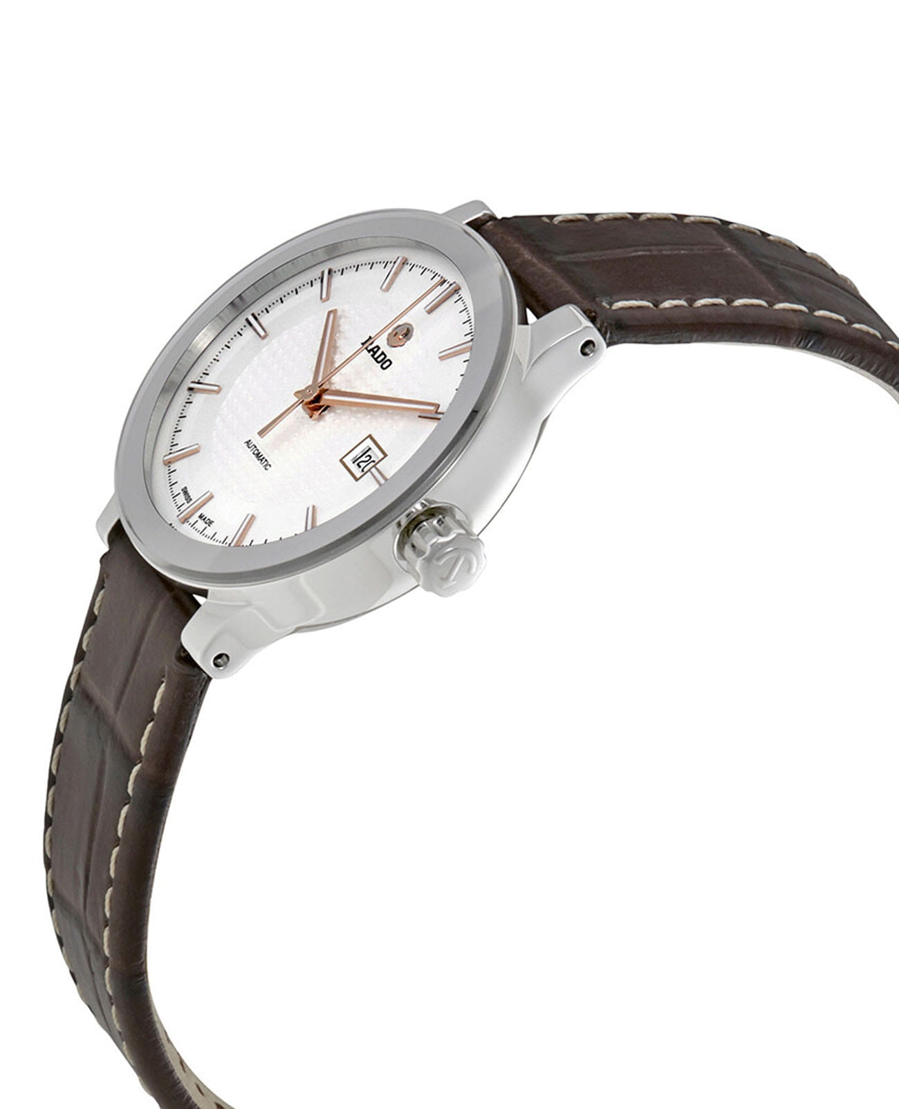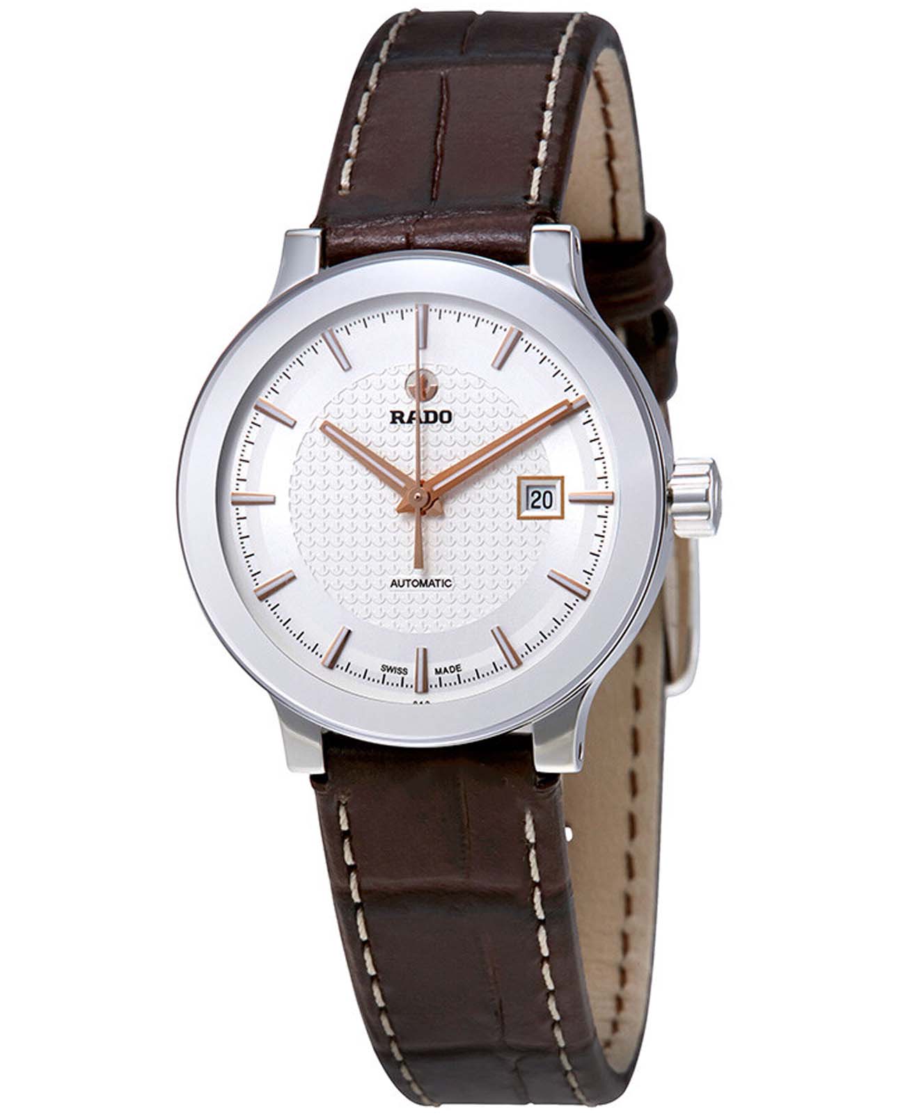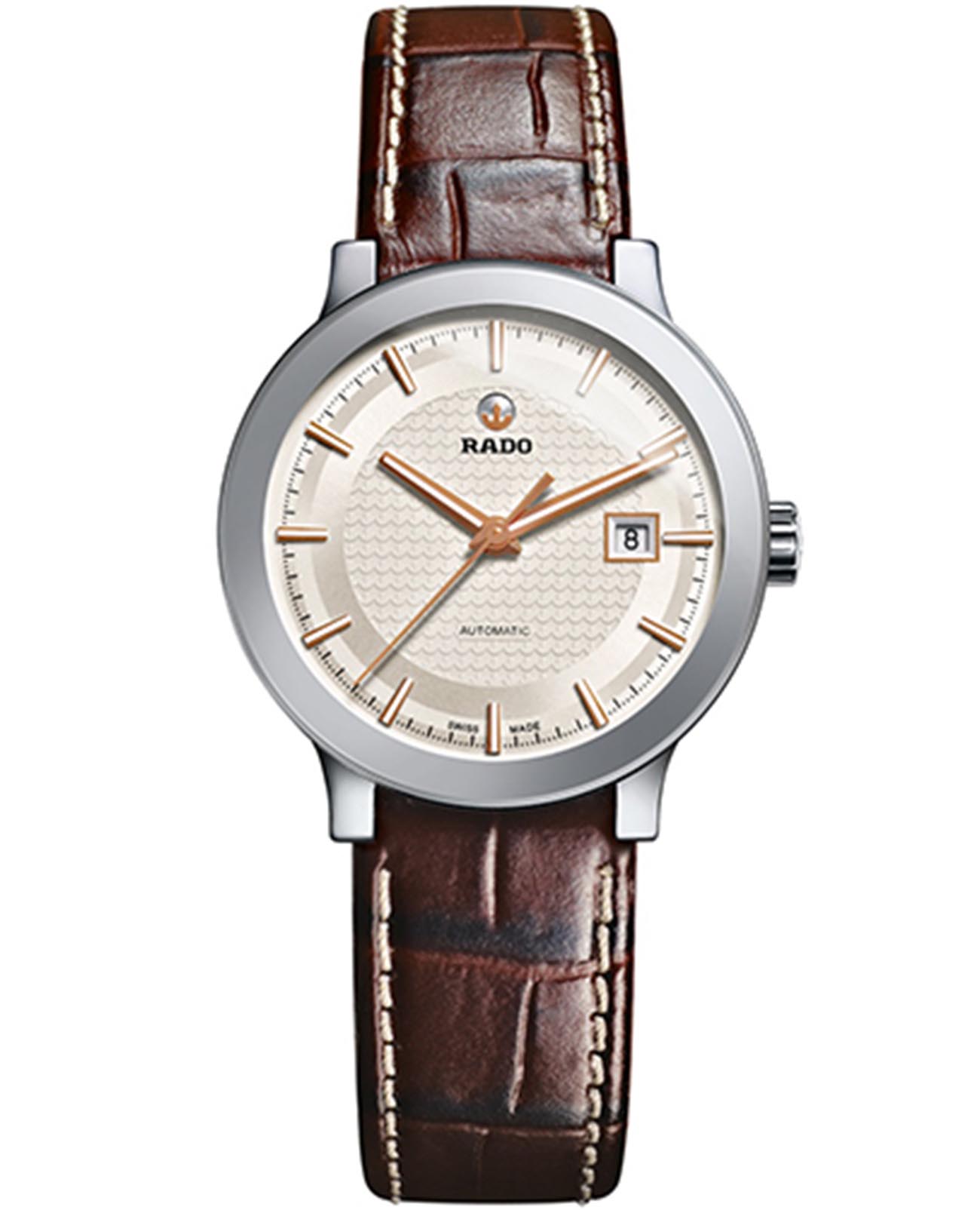 Швейцарские женские механические часы с автоподзаводом Rado Centrix R30940125. Корпус часов изготовлен из нержавеющей стали. Сапфировое стеклоСапфировое стеклоПрочный и надёжный материал из кристалла сапфира синтетического происхождения, характеризующийся особой твёрдостью и устойчивостью к царапинам и повреждениям. устойчивое к мелким механическим повреждениям. Окошко даты находится в положении 3 часа. Стрелки с люминесцентным покрытиемЛюминесцентное покрытиеПозволяет считывать показания времени в темноте. Производители наносят на стрелки, часовые индексы, безель или поверхность циферблата светонакопительный состав, дающий холодное свечение.. Класс водозащиты: 30 метров, позволит защитить корпус от случайных брызг или капель дождя. Кожаный ремешок на стандартной застежке.