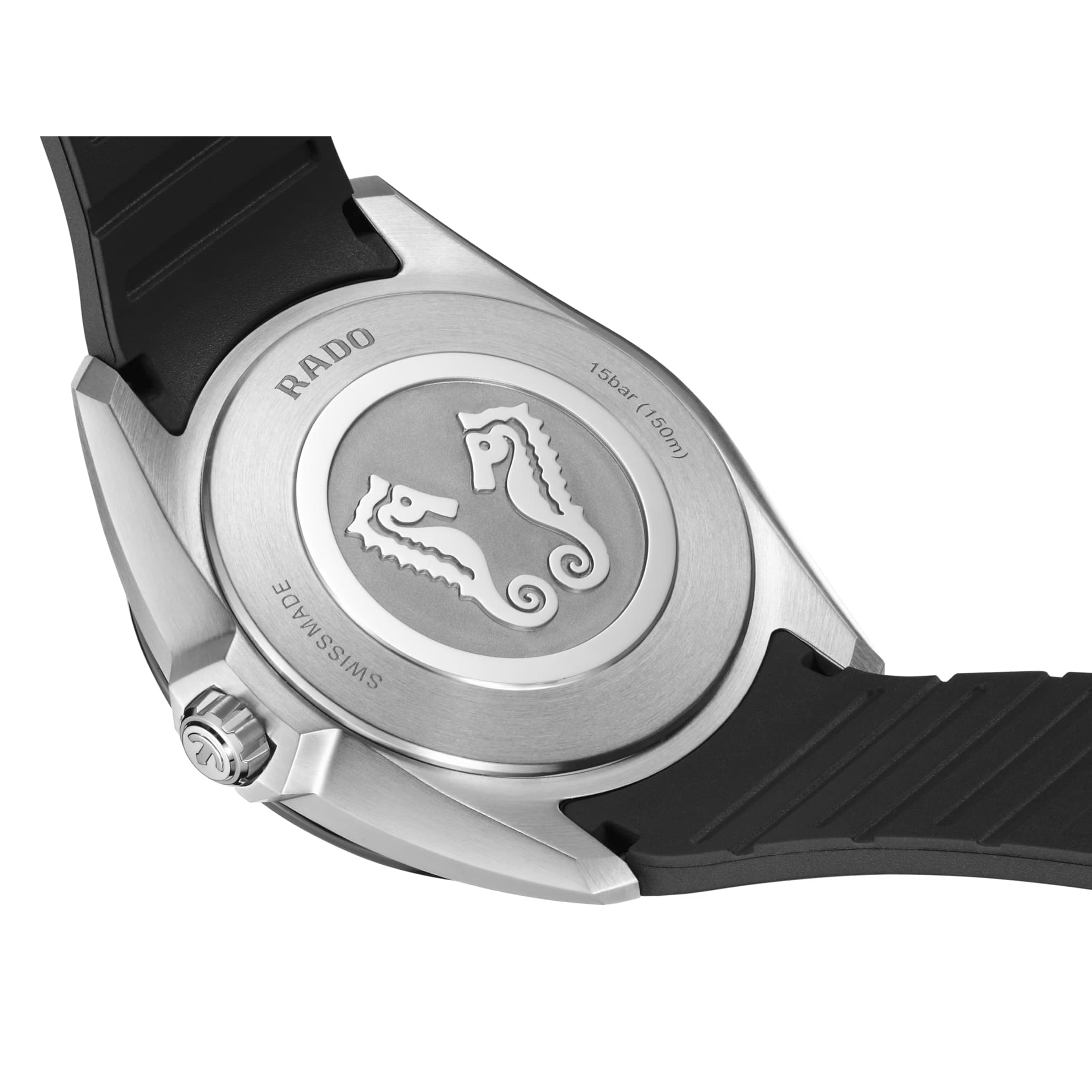 Мужские кварцевые часы Rado HyperChrome — это современное воплощение точности и мастерства материалов. Корпус диаметром 41,5 мм и толщиной 11,7 мм выполнен из полированной и матовой нержавеющей стали. БезельБезельВнешний ободок, закрепляющий стекло. В спортивных часах так называется поворотное кольцо с делениями на циферблате, выполняет роль таймера – замеряет отрезки времени на шкале. Неподвижный безель – элемент декора. Однонаправленно вращающийся безель на дайверских часах позволяет фиксировать моменты погружения и выныривания на поверхность. изготовлен из высокотехнологичной керамикиВысокотехнологичная керамикаИнновационный запатентованный Rado материал с гладкой или матовой поверхностью. Керамика за счёт кристаллической структуры обладает повышенной устойчивостью от возникновения царапин. Материал способен принимать температуру тела человека, обеспечивая невероятный комфорт при ношении. чёрного цвета, придающей часам прочность и изысканность. Циферблат бежевого цвета с лакированным покрытием оформлен индексами и стрелками с люминесцентным покрытиемЛюминесцентное покрытиеПозволяет считывать показания времени в темноте. Производители наносят на стрелки, часовые индексы, безель или поверхность циферблата светонакопительный состав, дающий холодное свечение. Super-Luminova®. Особенность подсветки — зелёное свечение метки 12 часов и минутной стрелки, и синее — остальных индексов и часовой стрелки, что обеспечивает интуитивное считывание времени в темноте. Циферблат защищён выпуклым сапфировым стекломСапфировое стеклоПрочный и надёжный материал из кристалла сапфира синтетического происхождения, характеризующийся особой твёрдостью и устойчивостью к царапинам и повреждениям. с антибликовым покрытиемАнтибликовое покрытиеСлой оксида металла в 0,13-0,3 микрон, благодаря которому стекло часов не бликует и не отражает свет. Антибликовое покрытие уменьшает отражение света в 10 раз, обеспечивая отличную читаемость показателей циферблата. на внутренней стороне. Механизм — кварцевый. Окошко даты расположено в положении 3 часов. Часы оснащены каучуковым ремешком чёрного цвета со стандартной застёжкой. Водонепроницаемость 150 м позволяет использовать часы для плавания и повседневного ношения. Идеальный выбор для тех, кто ценит инновации, точность и смелый дизайн.