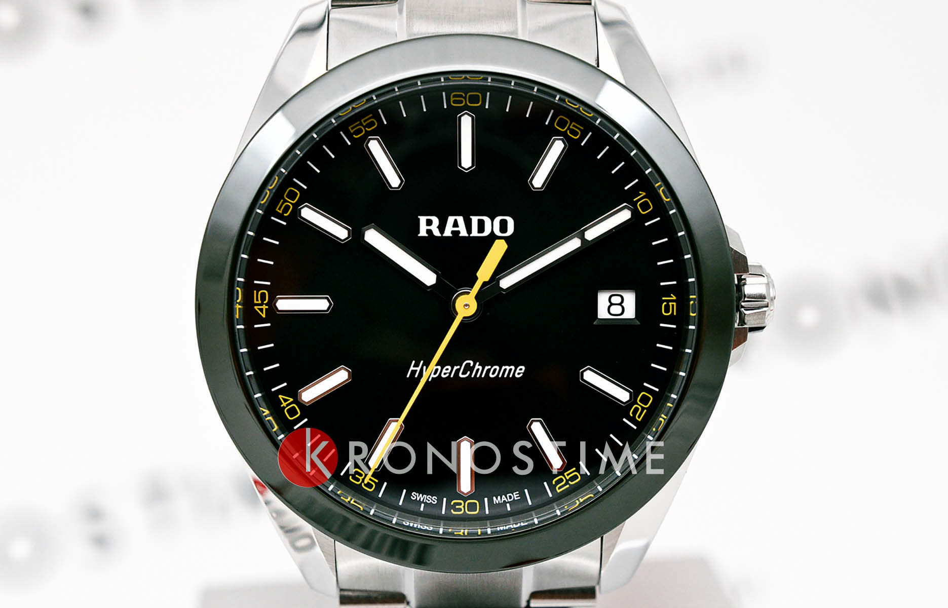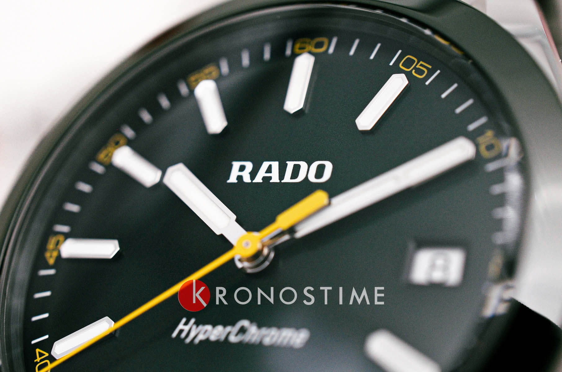Мужские кварцевые часы Rado HyperChrome — это современное воплощение точности и мастерства материалов. Корпус диаметром 41,5 мм и толщиной 11,7 мм выполнен из полированной и матовой нержавеющей стали. БезельБезельВнешний ободок, закрепляющий стекло. В спортивных часах так называется поворотное кольцо с делениями на циферблате, выполняет роль таймера – замеряет отрезки времени на шкале. Неподвижный безель – элемент декора. Однонаправленно вращающийся безель на дайверских часах позволяет фиксировать моменты погружения и выныривания на поверхность. изготовлен из высокотехнологичной керамикиВысокотехнологичная керамикаИнновационный запатентованный Rado материал с гладкой или матовой поверхностью. Керамика за счёт кристаллической структуры обладает повышенной устойчивостью от возникновения царапин. Материал способен принимать температуру тела человека, обеспечивая невероятный комфорт при ношении. зелёного цвета, придающей часам прочность и изысканность. Циферблат зелёного цвета с лакированным покрытием оформлен индексами и стрелками с люминесцентным покрытиемЛюминесцентное покрытиеПозволяет считывать показания времени в темноте. Производители наносят на стрелки, часовые индексы, безель или поверхность циферблата светонакопительный состав, дающий холодное свечение. Super-Luminova®. Особенность подсветки — зелёное свечение метки 12 часов и минутной стрелки, и синее — остальных индексов и часовой стрелки, что обеспечивает интуитивное считывание времени в темноте. Циферблат защищён выпуклым сапфировым стекломСапфировое стеклоПрочный и надёжный материал из кристалла сапфира синтетического происхождения, характеризующийся особой твёрдостью и устойчивостью к царапинам и повреждениям. с антибликовым покрытиемАнтибликовое покрытиеСлой оксида металла в 0,13-0,3 микрон, благодаря которому стекло часов не бликует и не отражает свет. Антибликовое покрытие уменьшает отражение света в 10 раз, обеспечивая отличную читаемость показателей циферблата. на внутренней стороне. Механизм — кварцевый. Окошко даты расположено в положении 3 часов. Часы оснащены трёхрядным стальным браслетом с центральными звеньями и трёхсекционной застёжкой с системой быстрой регулировки. Водонепроницаемость 150 м позволяет использовать часы для плавания и повседневного ношения. Идеальный выбор для тех, кто ценит инновации, точность и смелый дизайн.