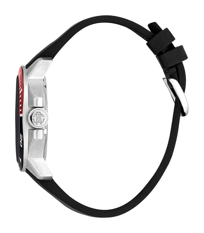 ROBERTO CAVALLI Spiccato RC5G044P0065 — стильные итальянские часы сочетающие в себе элегантность и современный функционал. Круглый корпус диаметром 42 мм выполнен из нержавеющей стали, толщина корпуса составляет 11 мм, что придает модели выразительный внешний вид и надежную защиту от внешних воздействий. Часы оснащены кварцевым механизмом, также обладают функцией отображения даты, что делает их удобными для ежедневного использования. Минеральное стеклоМинеральное стеклоМинеральное стекло представляет собой искусственно выращенный минерал кварца. Такое стекло отличается особой устойчивостью к повреждениям и царапинам. Уступает по некоторым качествам сапфировому стеклу. защищает часы от царапин. Водозащита 100 метров, позволит плавать, нырять и заниматься другими водными видами спорта. Силиконовый ремешок на стандартной застёжке обеспечивает комфортное ношение. БезельБезельВнешний ободок, закрепляющий стекло. В спортивных часах так называется поворотное кольцо с делениями на циферблате, выполняет роль таймера – замеряет отрезки времени на шкале. Неподвижный безель – элемент декора. Однонаправленно вращающийся безель на дайверских часах позволяет фиксировать моменты погружения и выныривания на поверхность. с PVD-покрытиемPVDУльтратонкое покрытие наносится в технике вакуумного напыления, сочетает в себе нитрид титана особой прочности со слоем золота или оксида хрома. Несёт в себе декоративную или защитную функцию.. Стрелки и метки с люминесцентным покрытиемЛюминесцентное покрытиеПозволяет считывать показания времени в темноте. Производители наносят на стрелки, часовые индексы, безель или поверхность циферблата светонакопительный состав, дающий холодное свечение. обеспечивают отличную читаемость в любое время суток.
